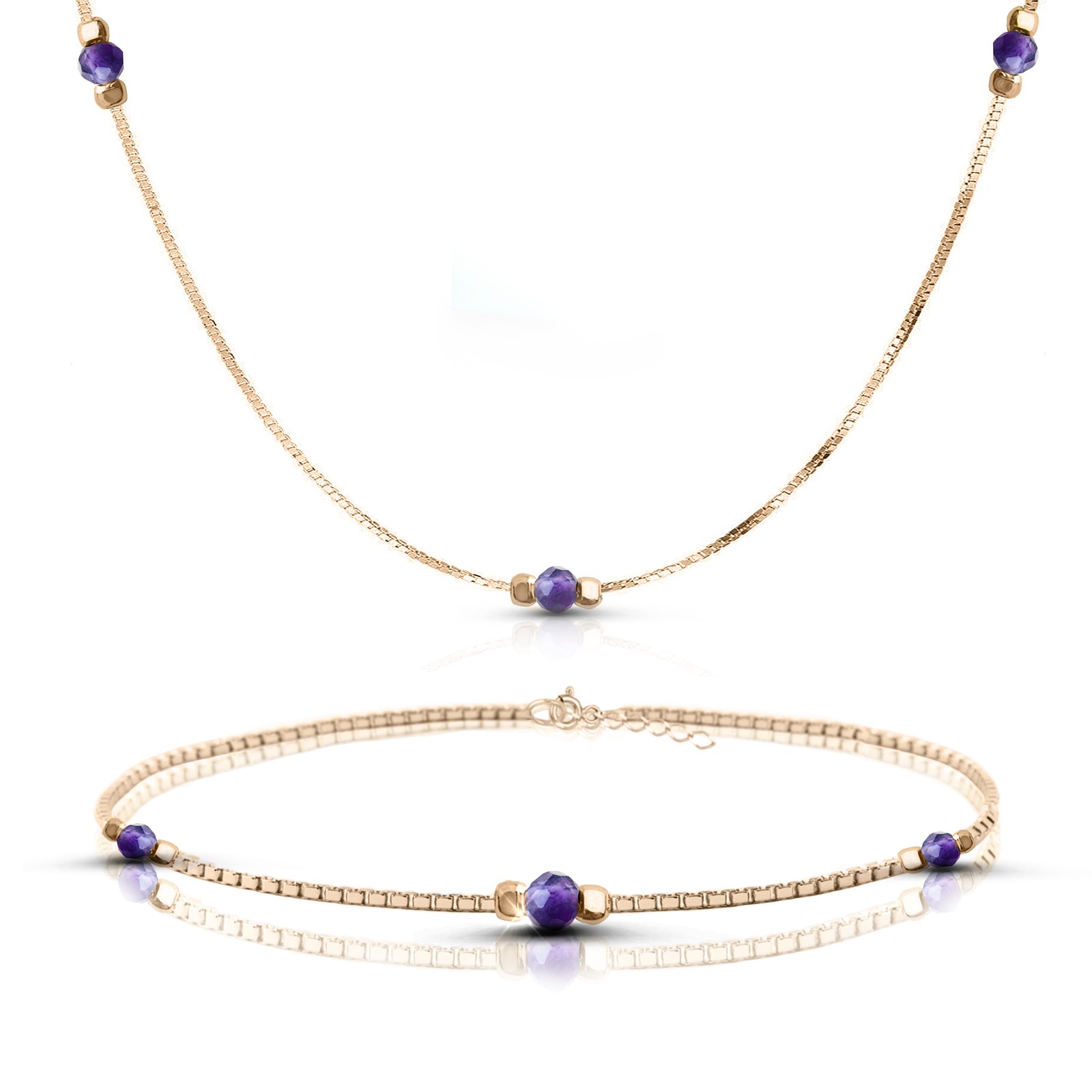Naszyjnik i bransoletka pozłacana z ametystem Naszyjnik i bransoletka pozłacana z ametystem