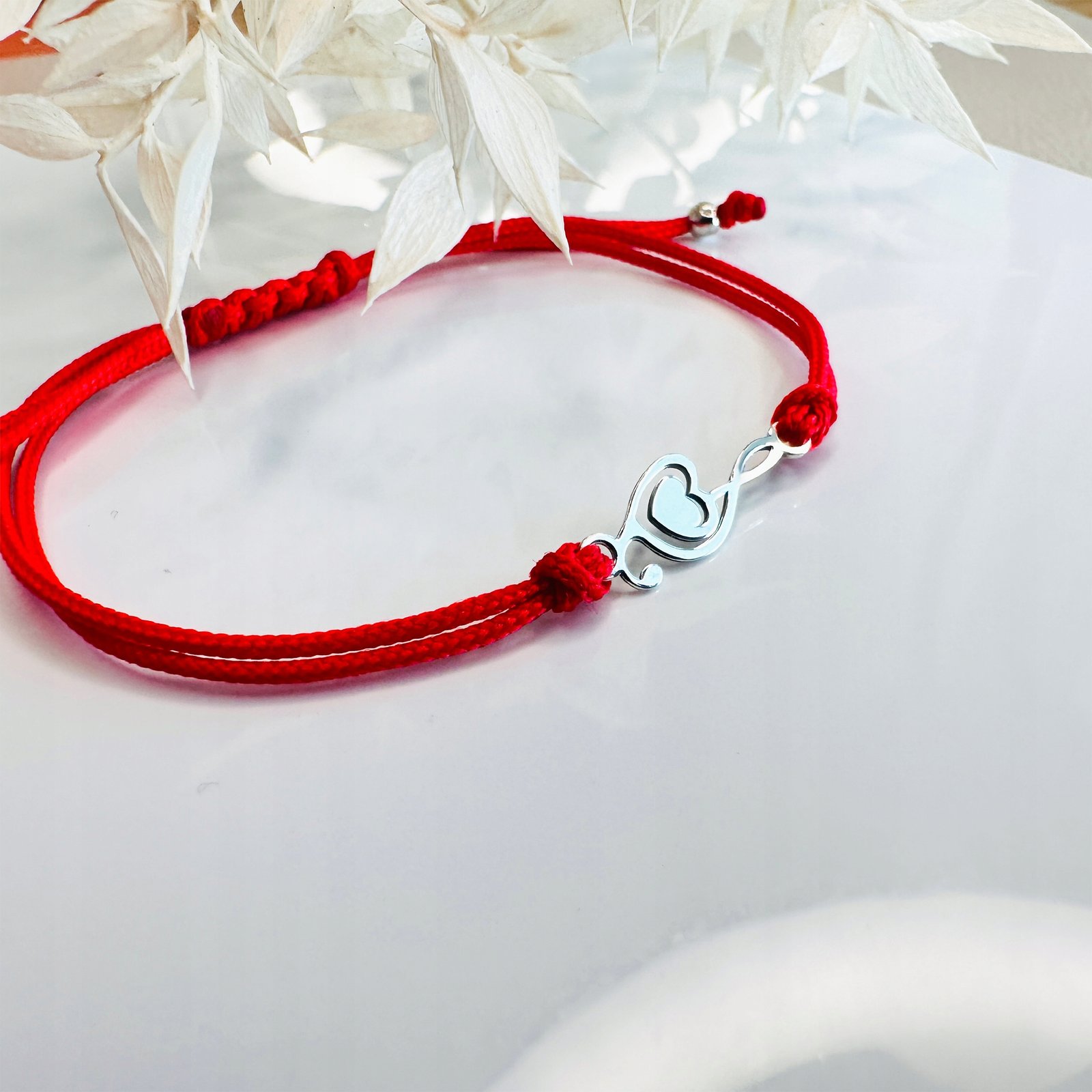 Bransoletka na sznurku nutka muzyka sznurkowa srebrna 925 na prezent
