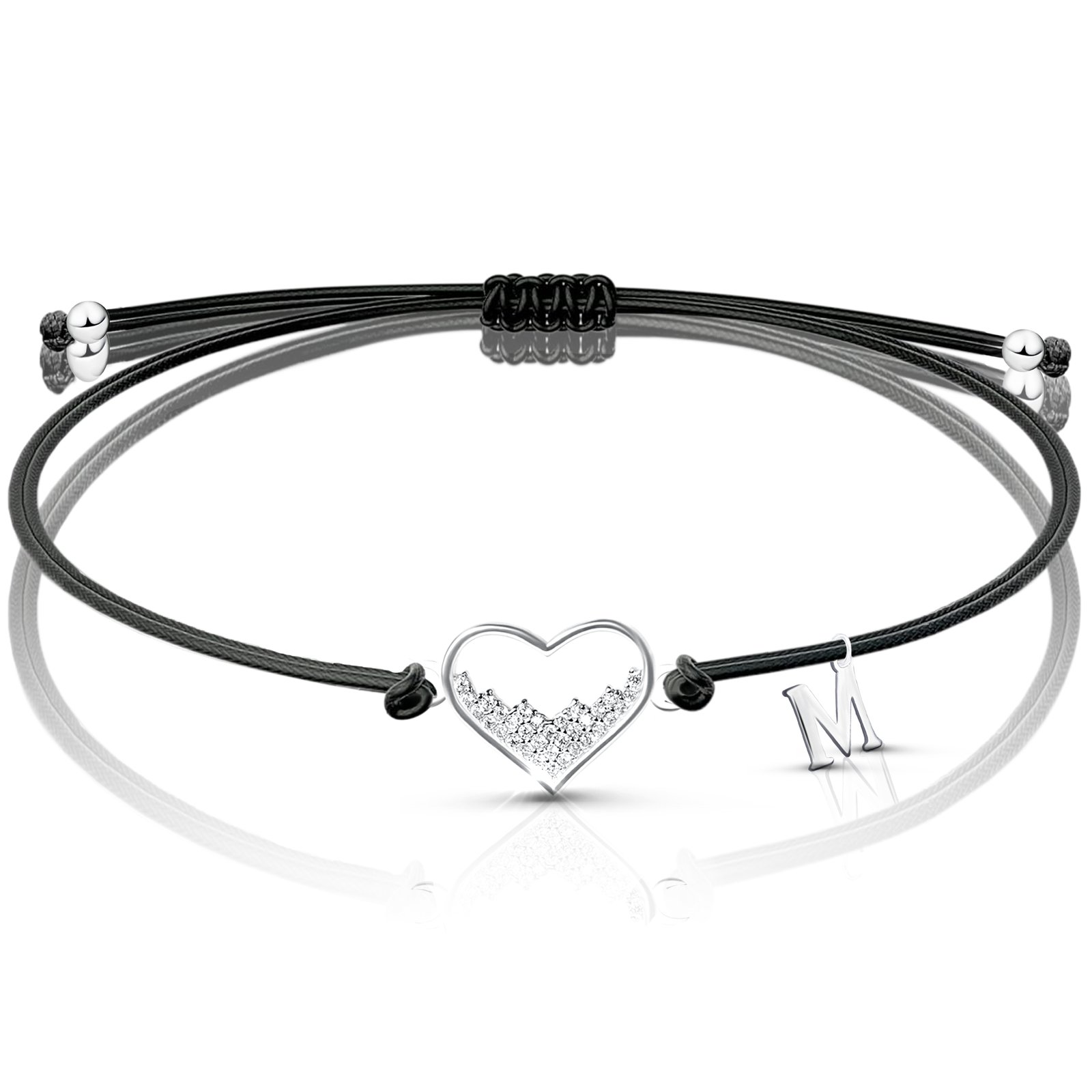Bransoletka na sznurku serce z Twoją literką Bransoletka na sznurku serce z Twoją literką