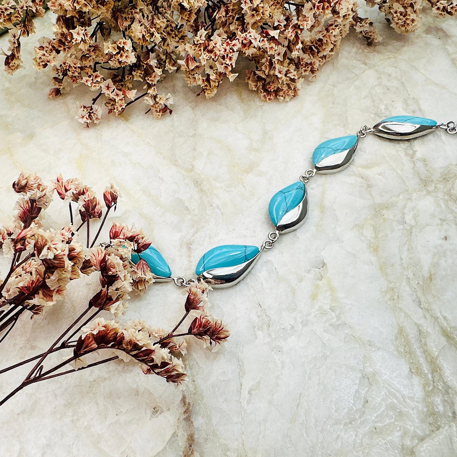 BRANSOLETKA TURKUS DAMSKA SREBRNA Z TURKUSEM 925