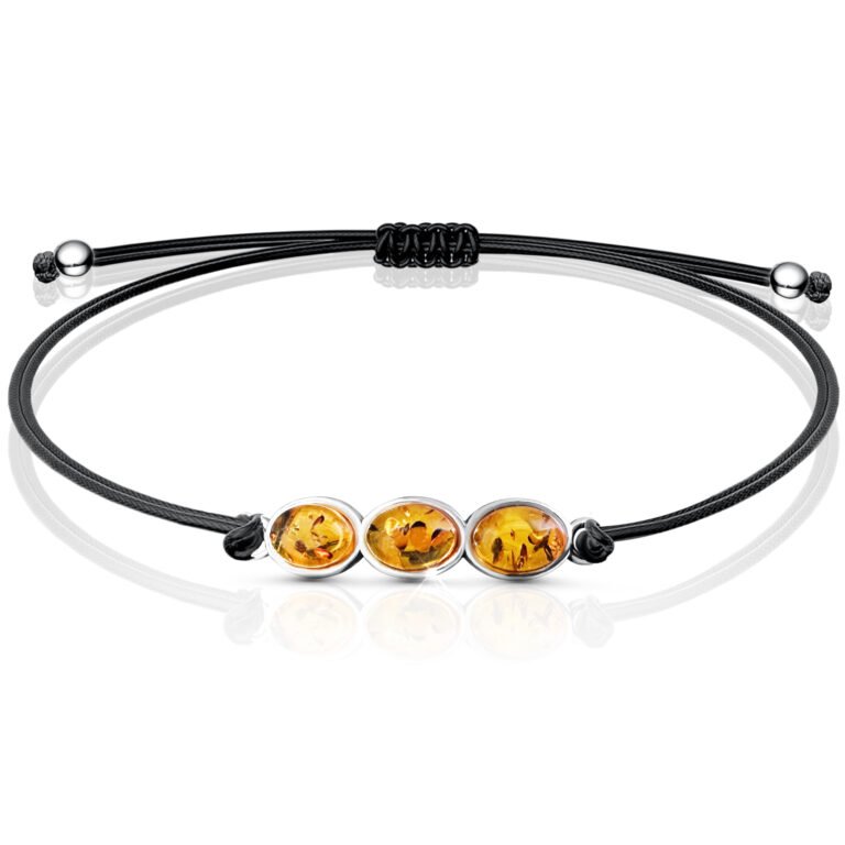 BRANSOLETKA Z BURSZTYNEM SREBRNA