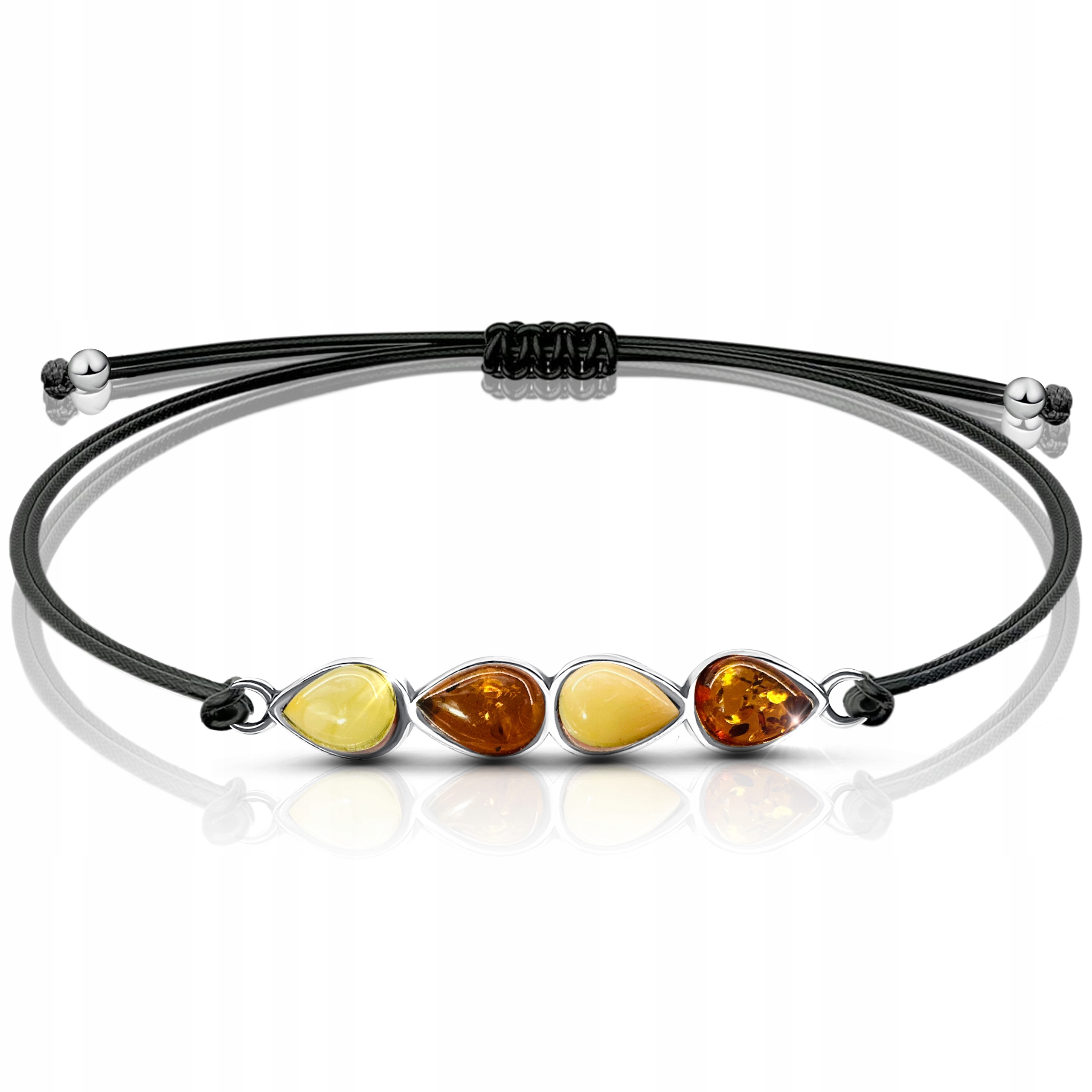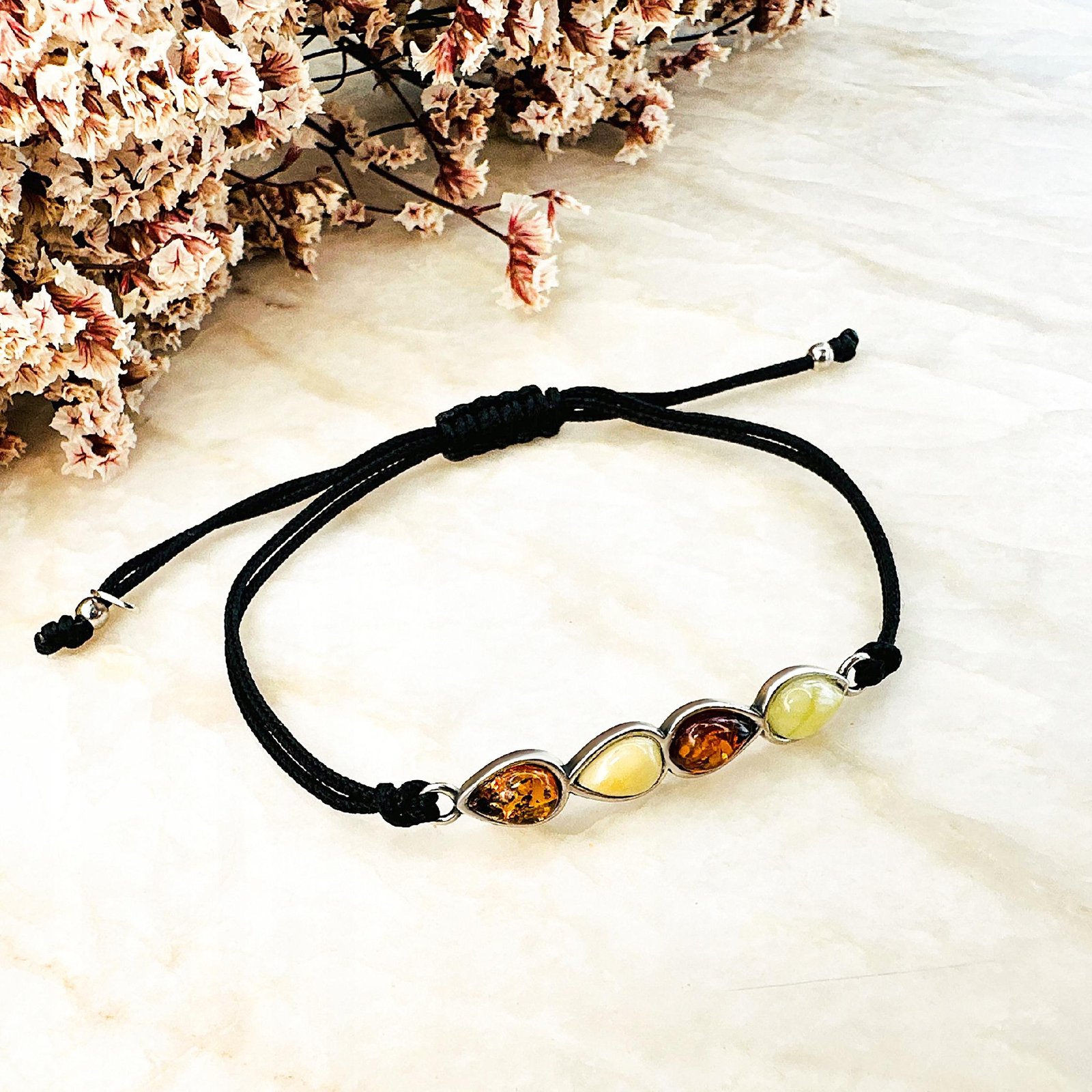 BRANSOLETKA BURSZTYN MLECZNY SREBRO NA SZNURKU