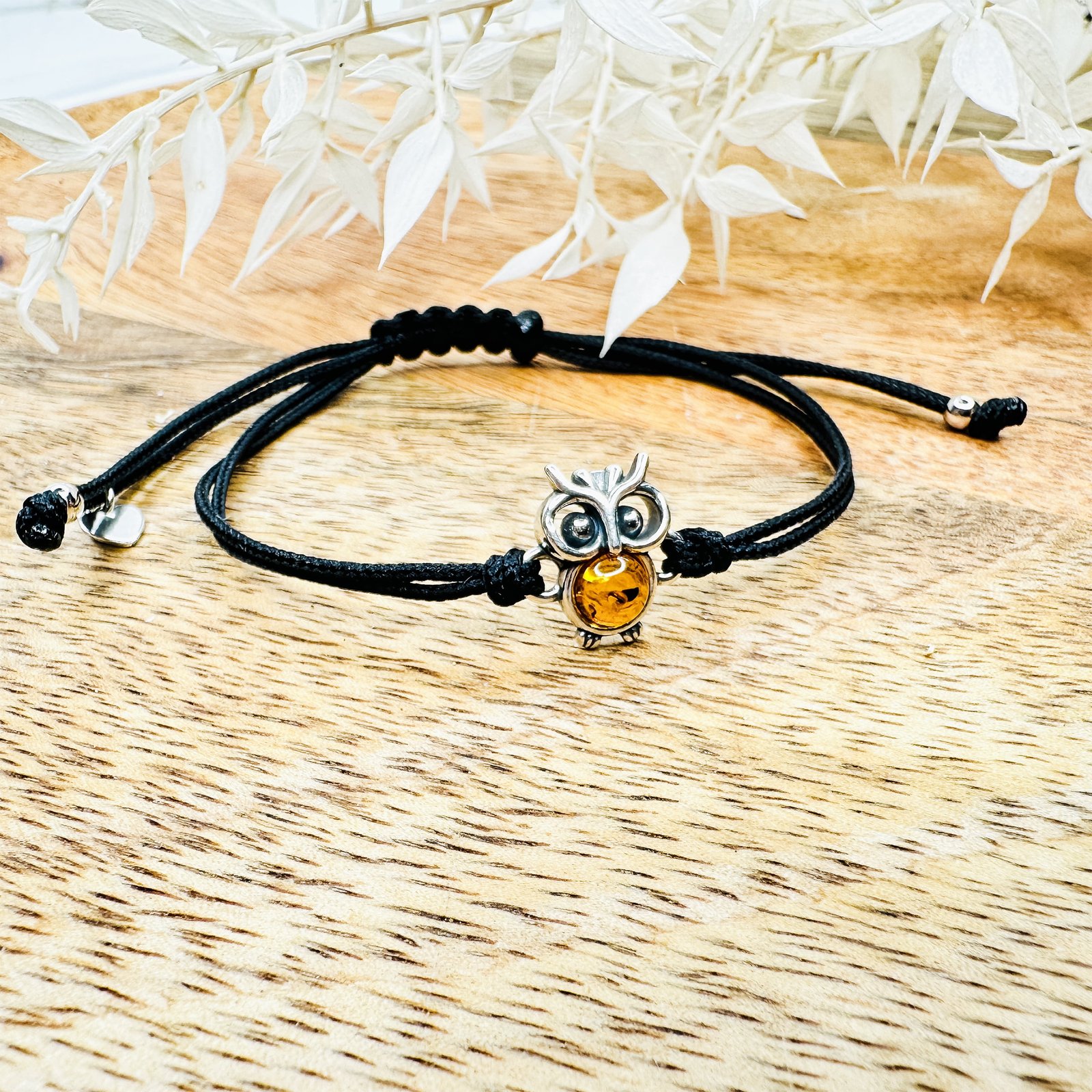 Srebrna bransoletka z bursztynem na sznurku – oaza naturalnej harmonii!