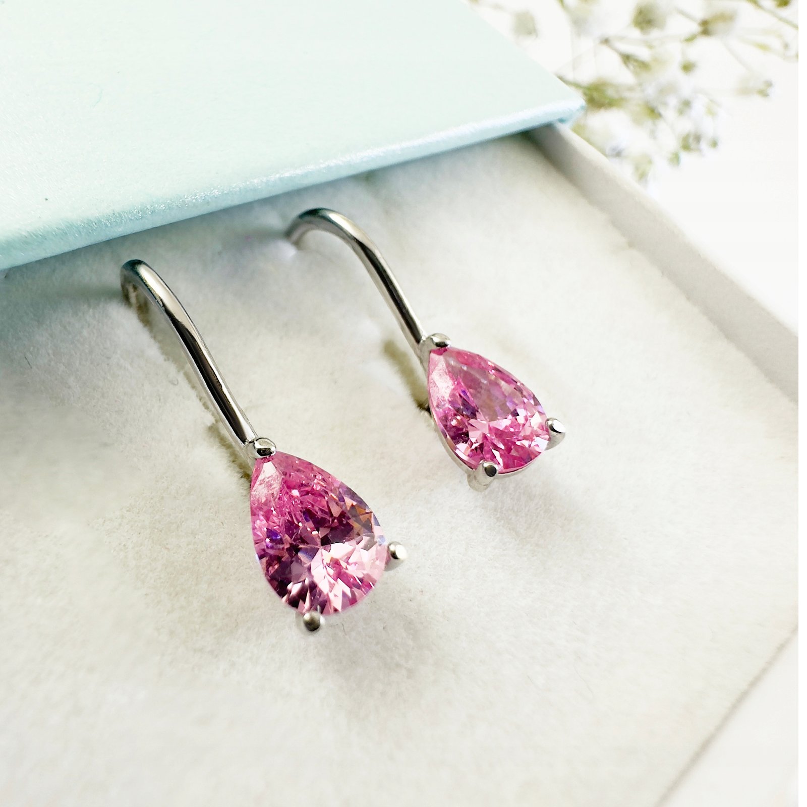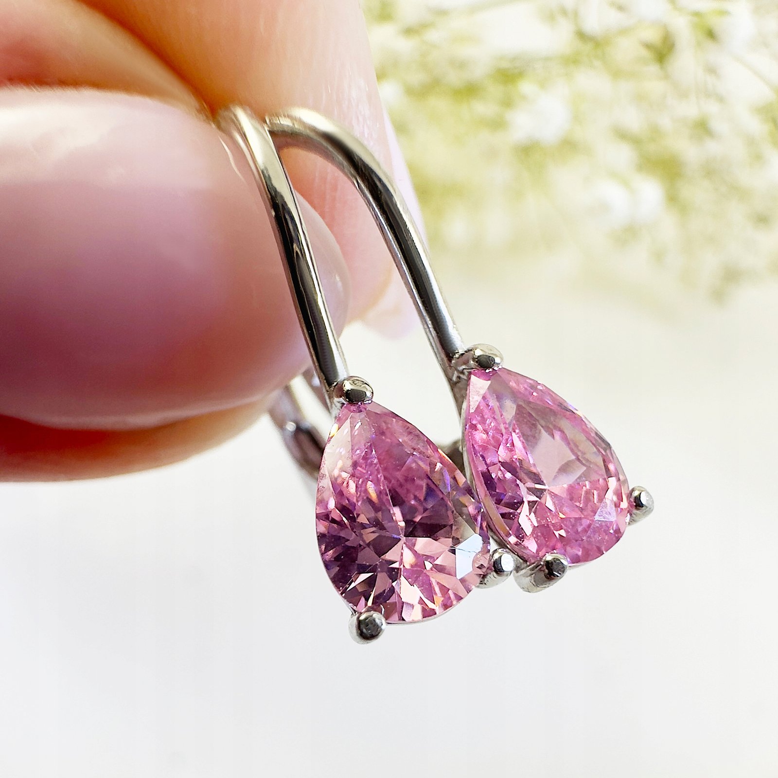 Kolczyki dla dziewczynki wiszące różowe cyrkonie