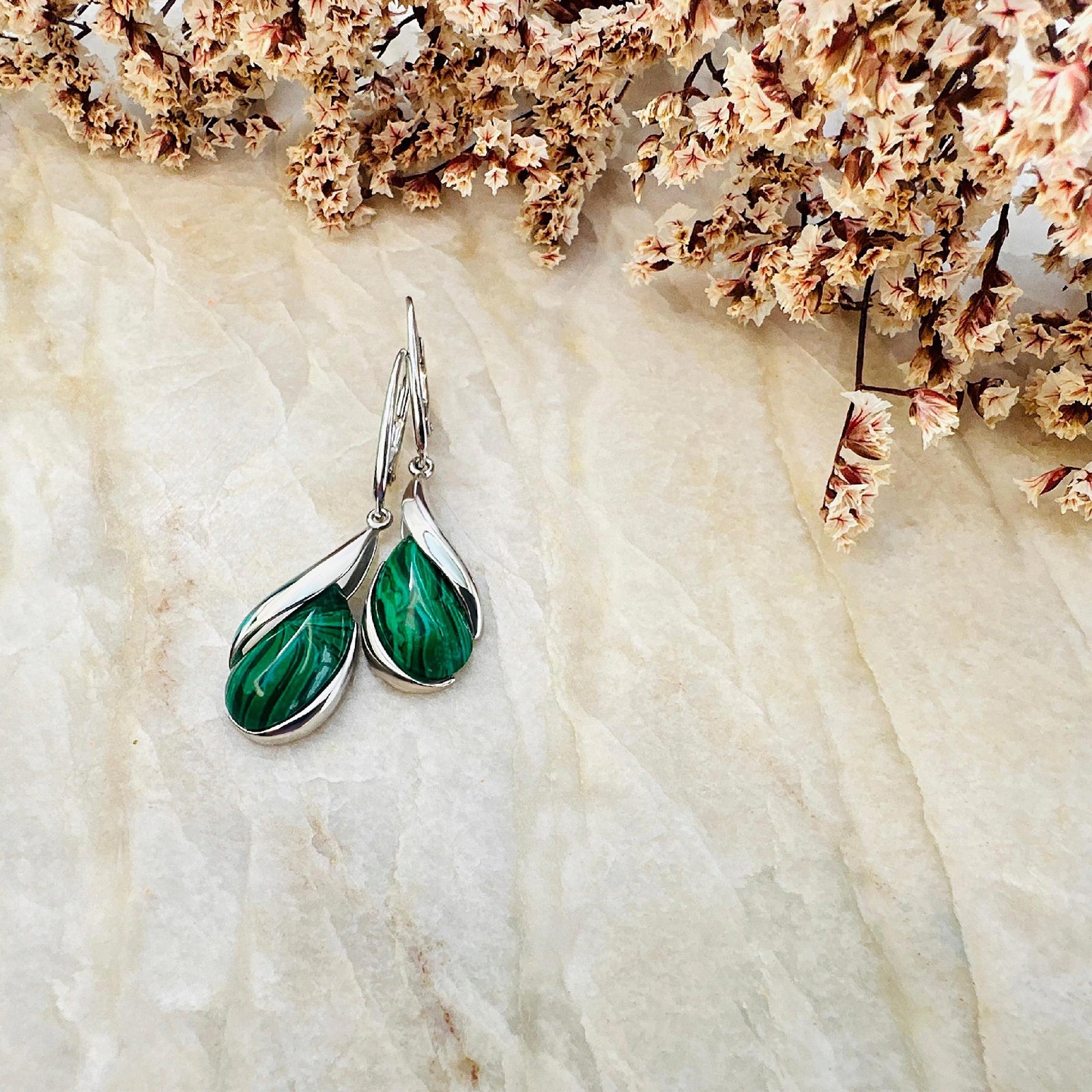 Kolczyki srebrne z malachitem