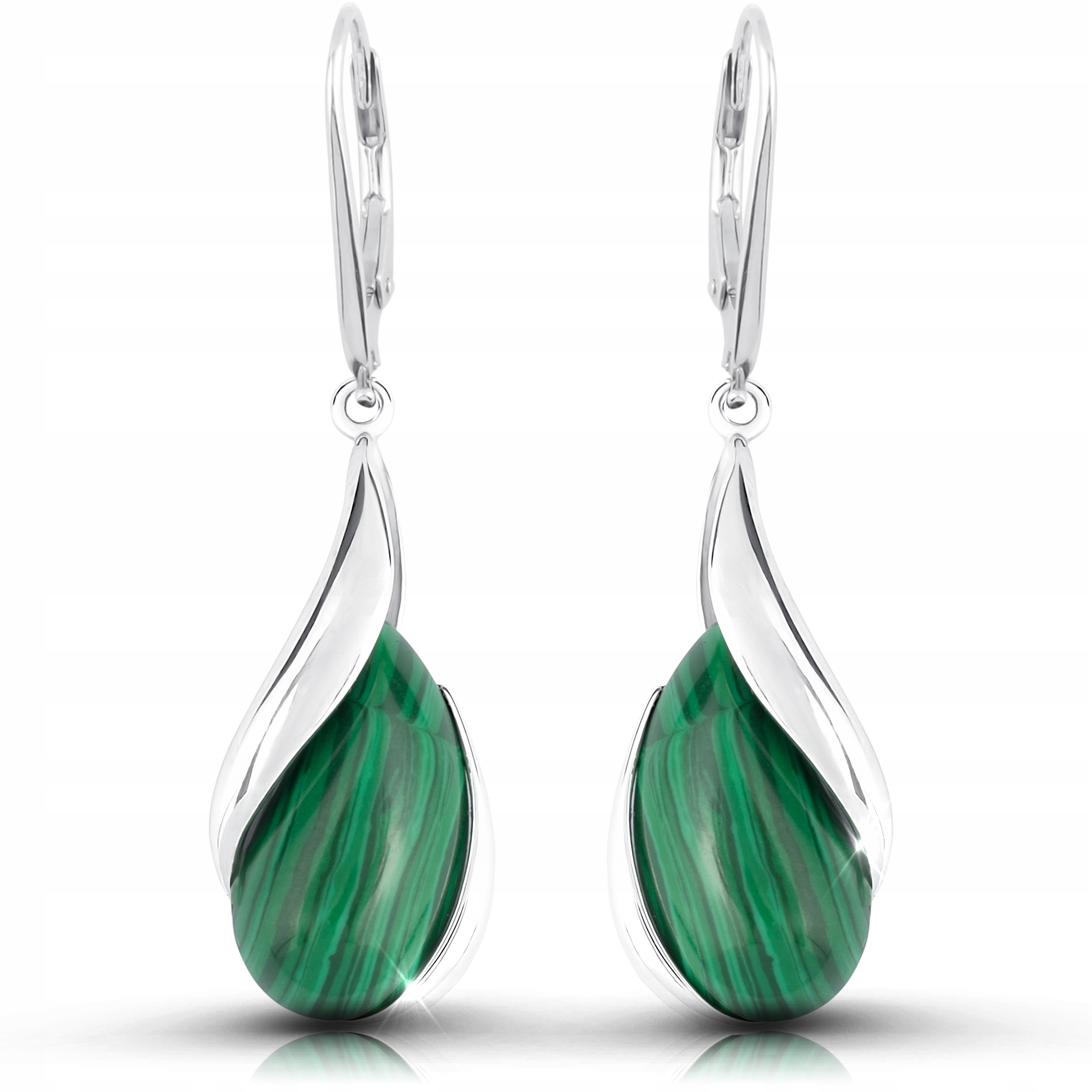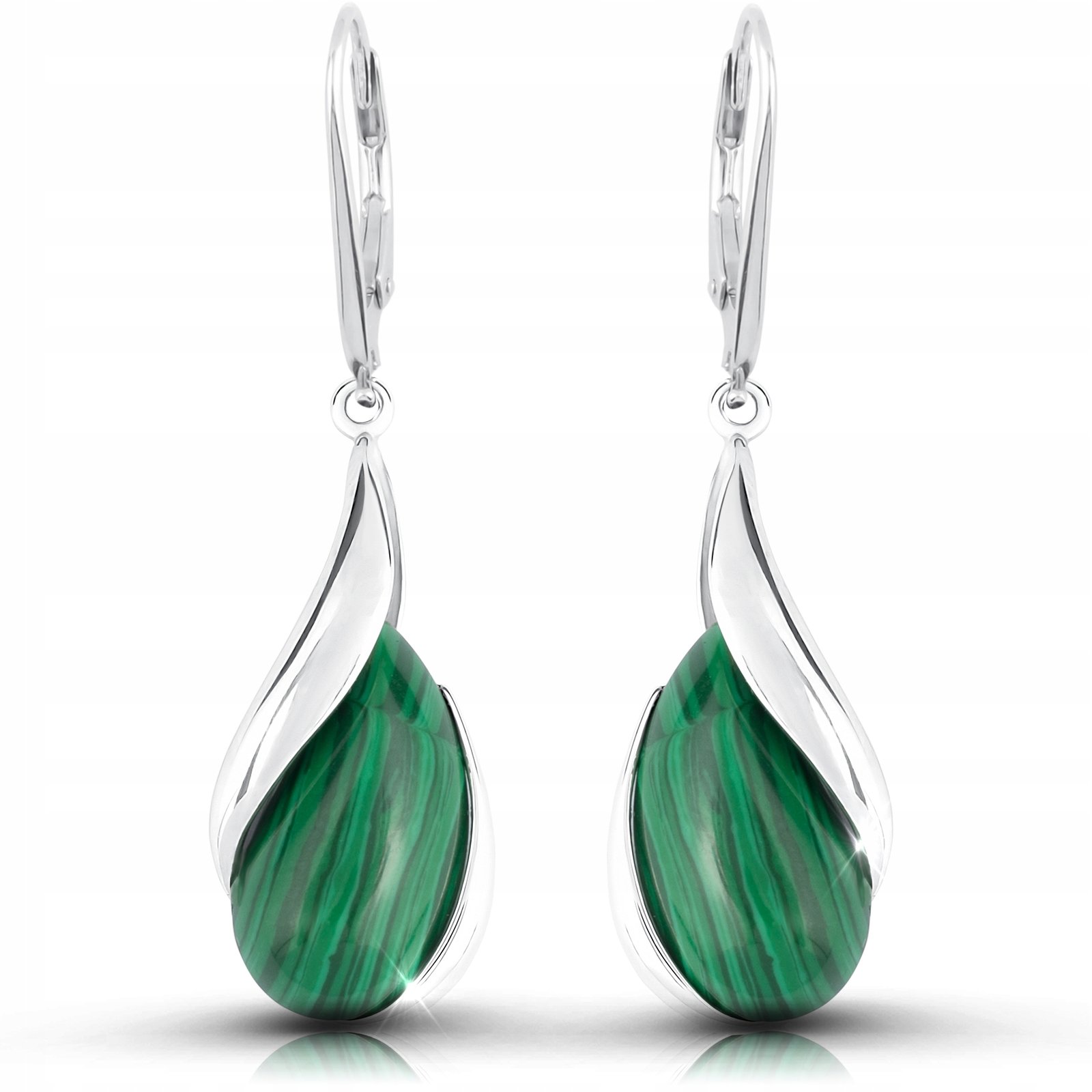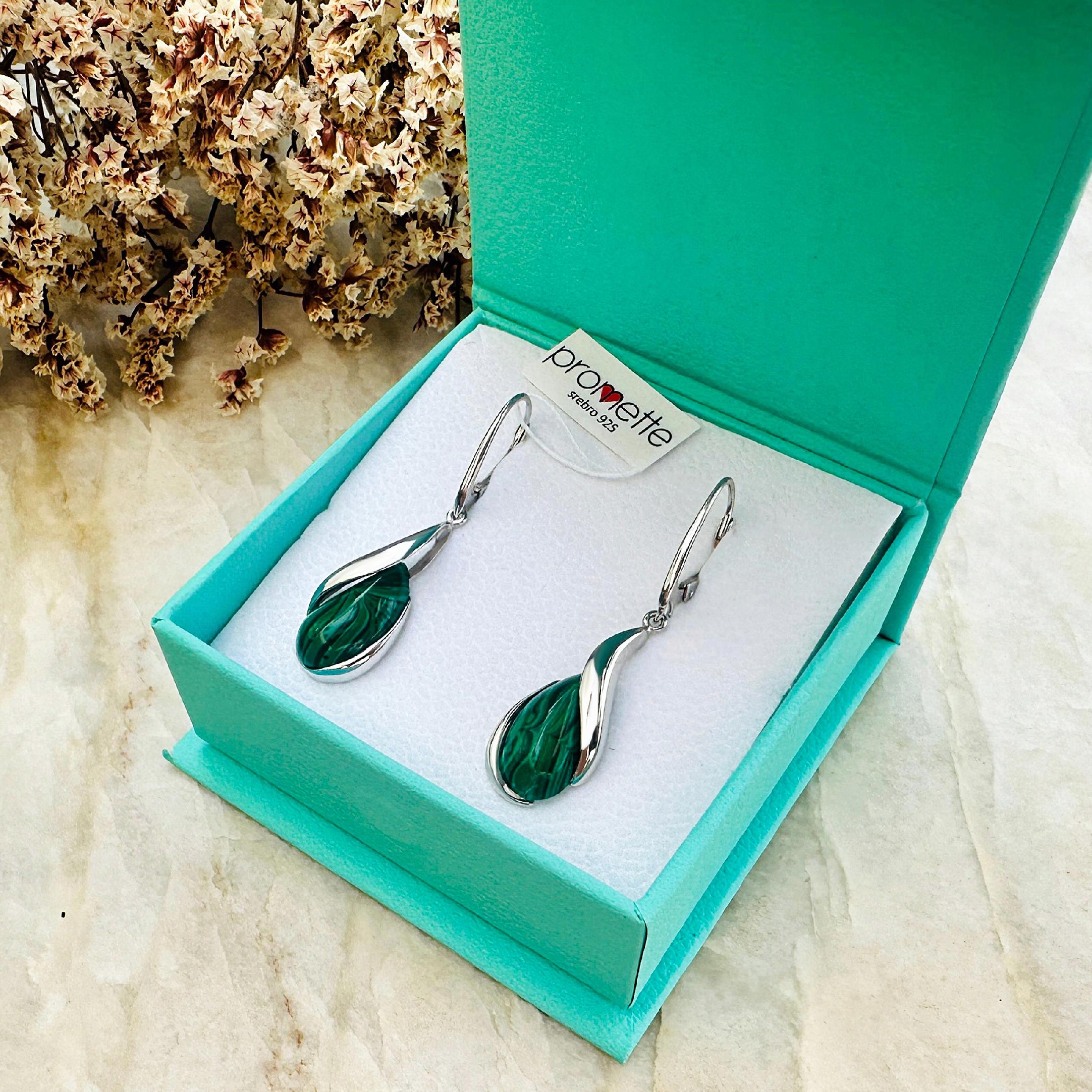 Kolczyki srebrne z malachitem Kolczyki srebrne z malachitem