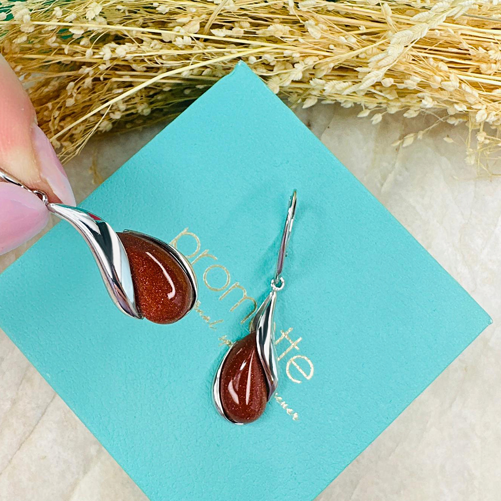Oszczędź czas i kup gotowy do wręczenia prezent - nasze kolczyki z piaskiem pustyni zapakowane są w eleganckie pudełko oraz torebkę prezentową, która dodatkowo nadaje im luksusowego charakteru.
