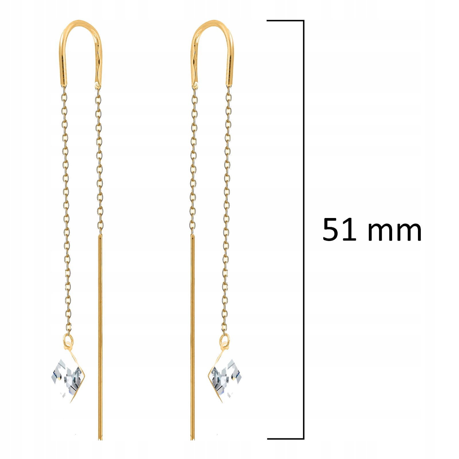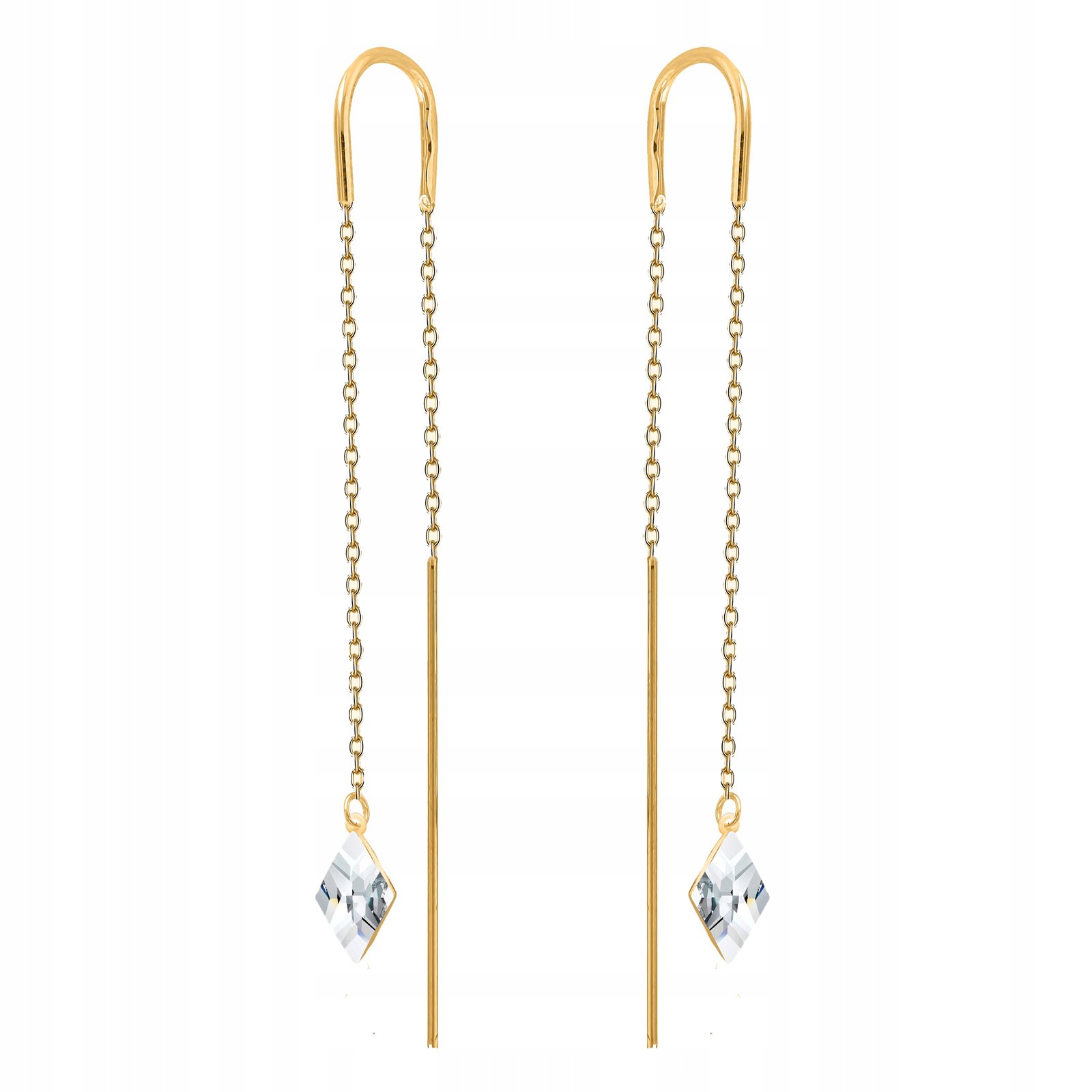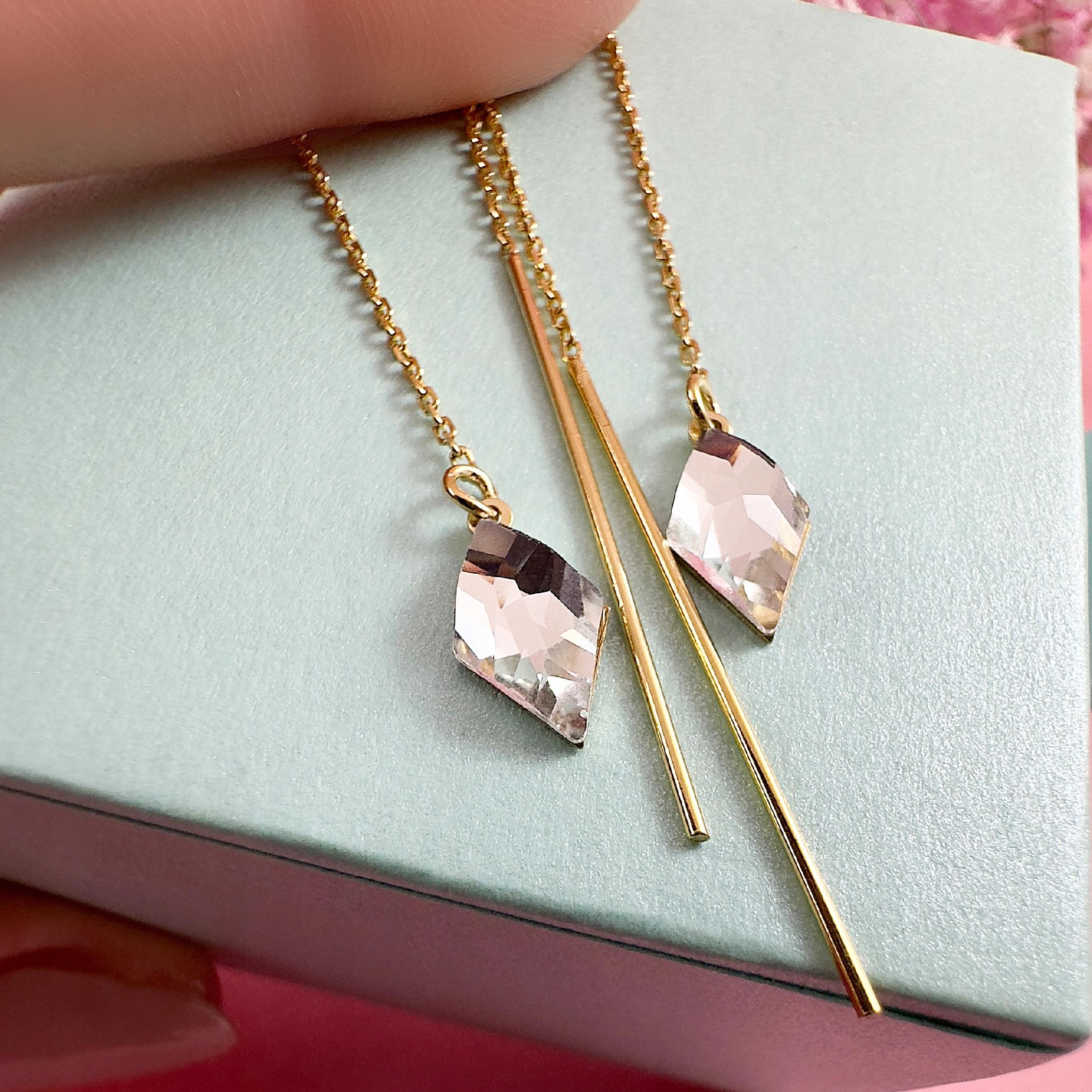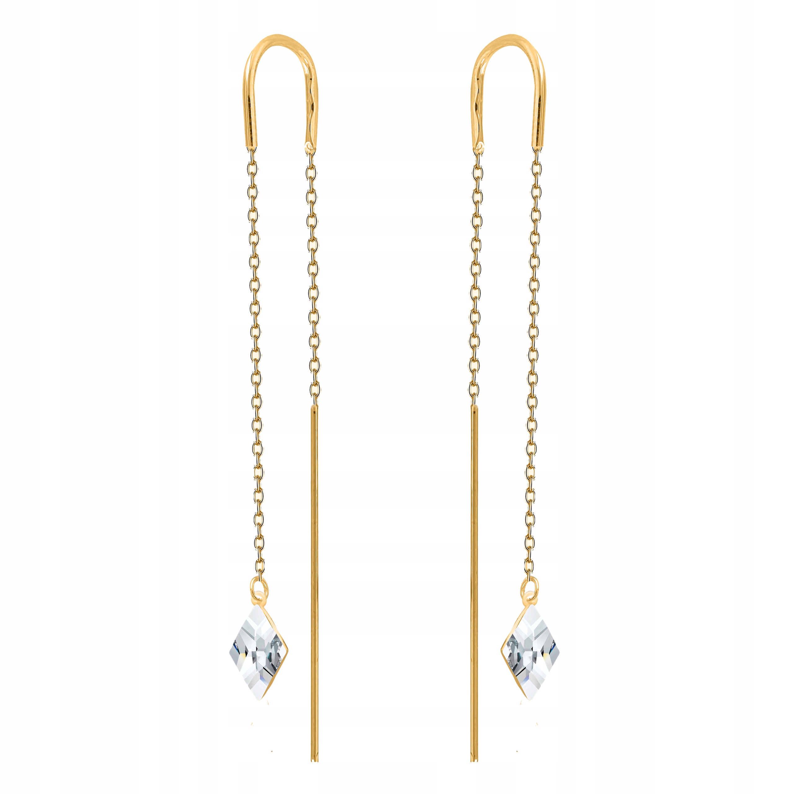Kolczyki przeciągane złote długie wiszące kryształ