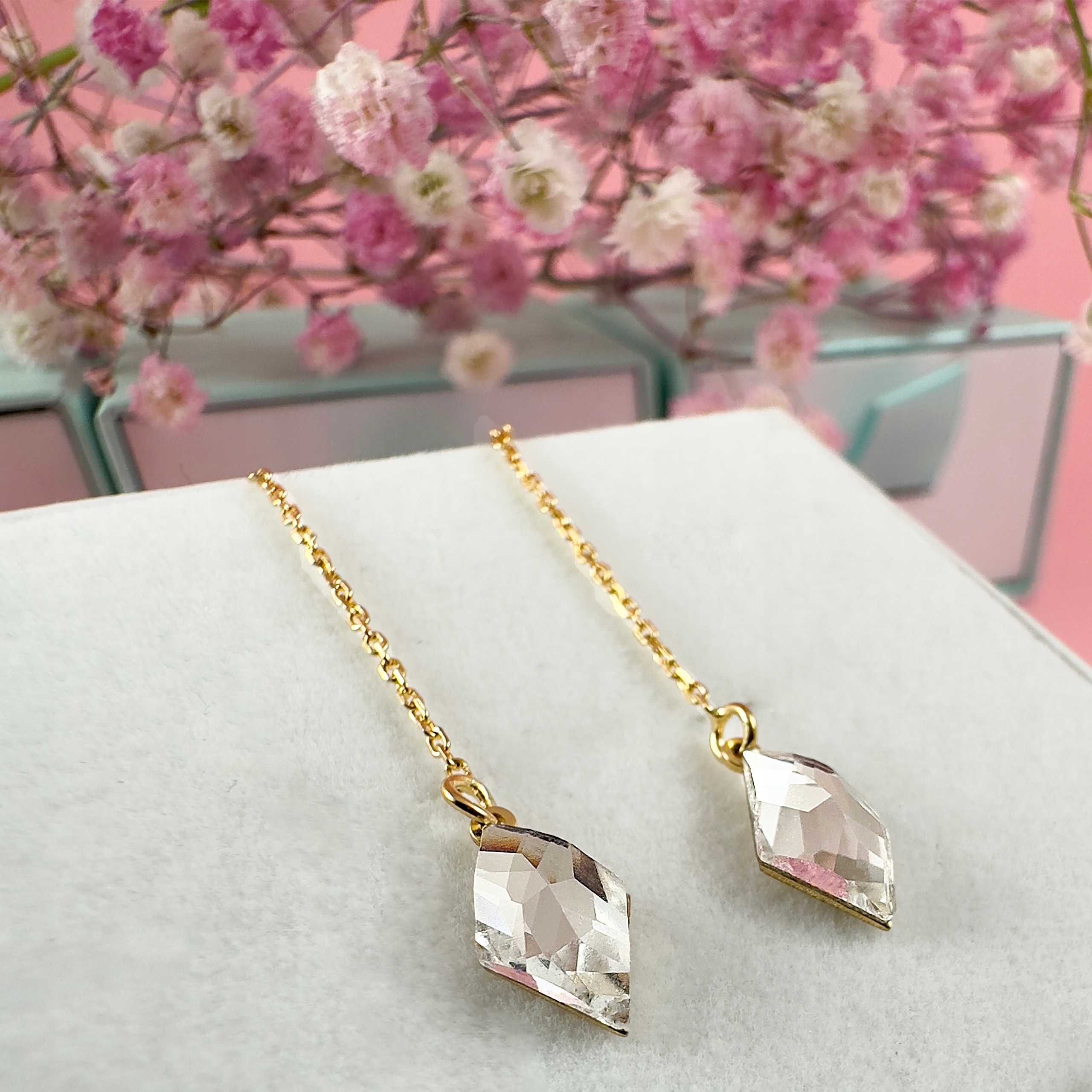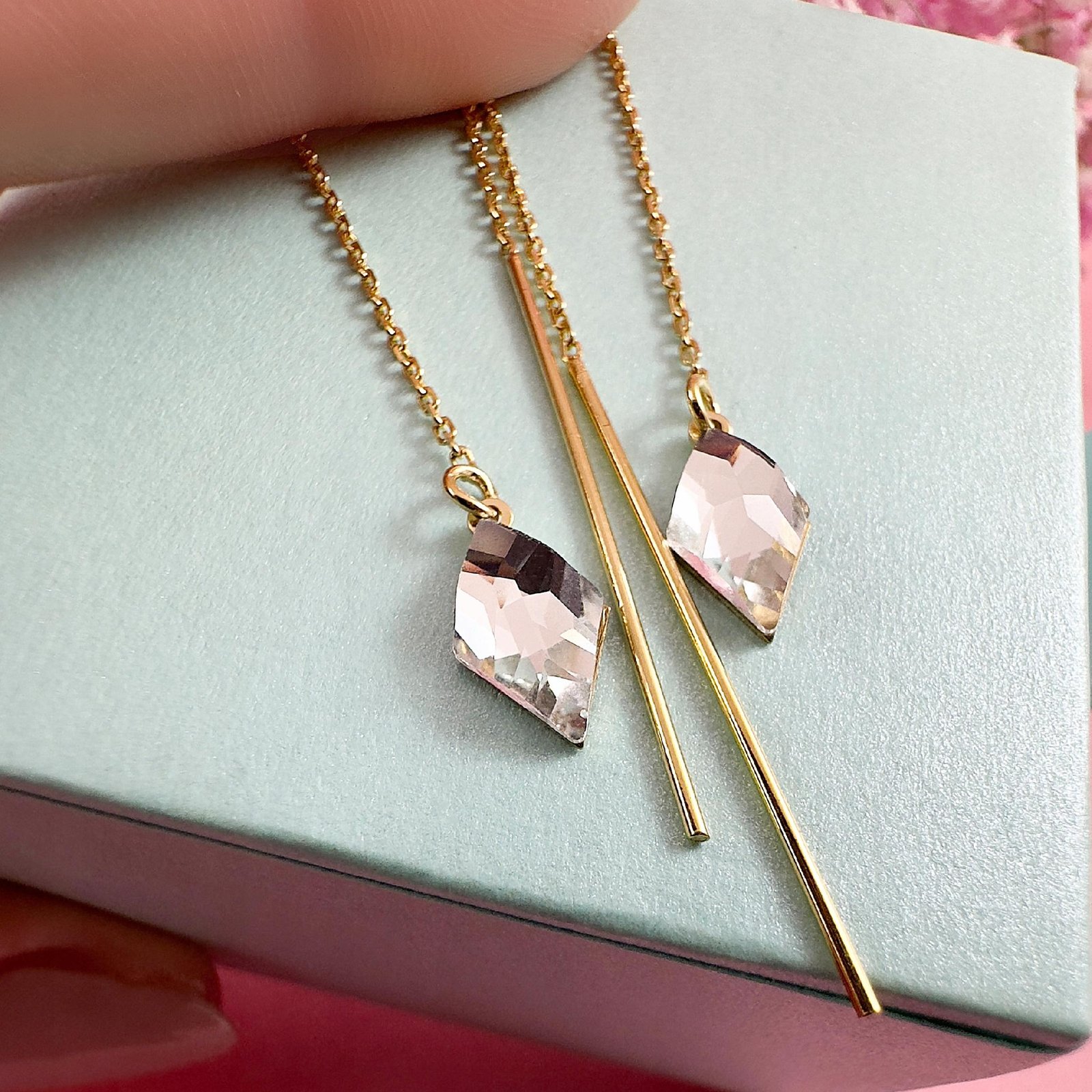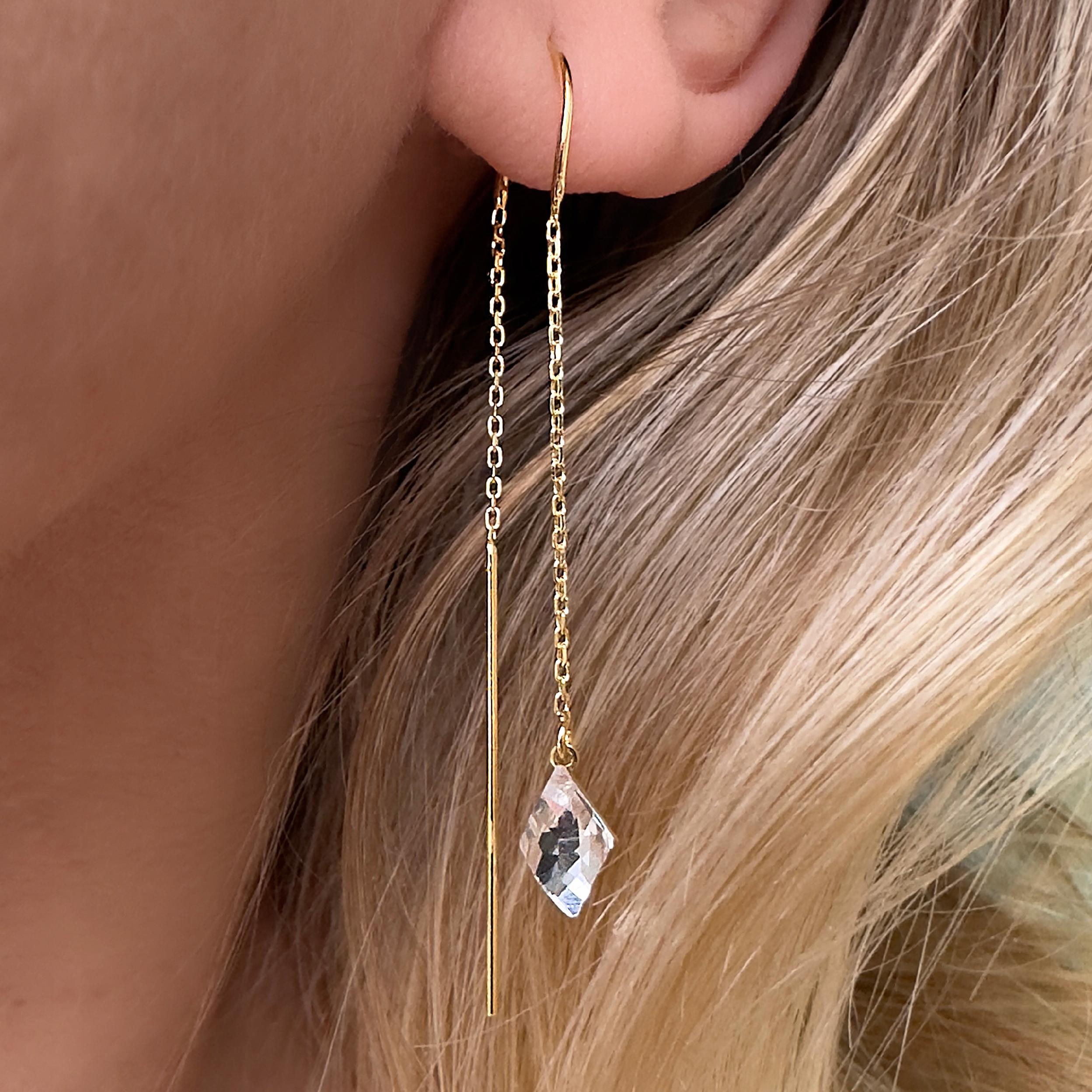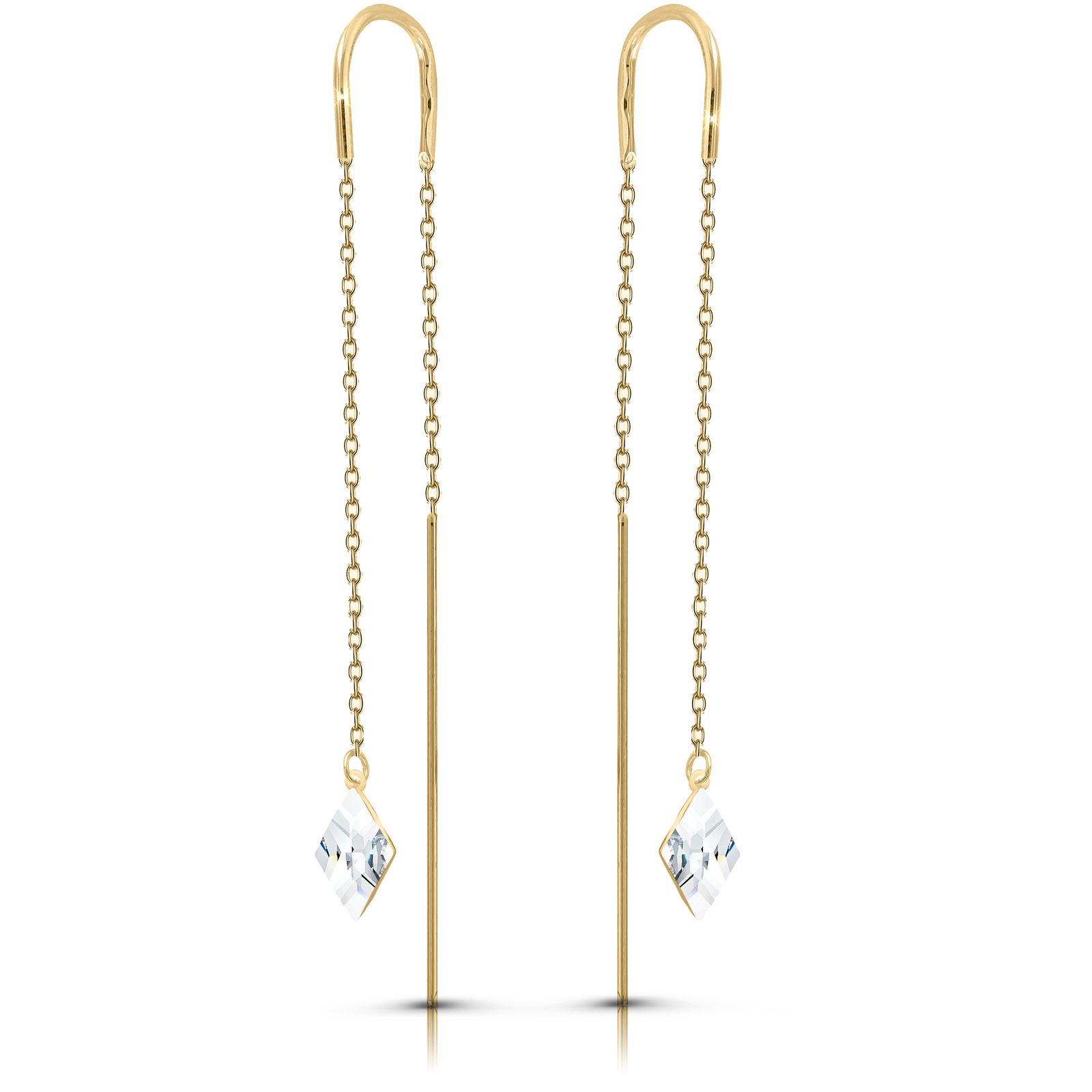 Kolczyki przeciągane złote długie wiszące kryształ