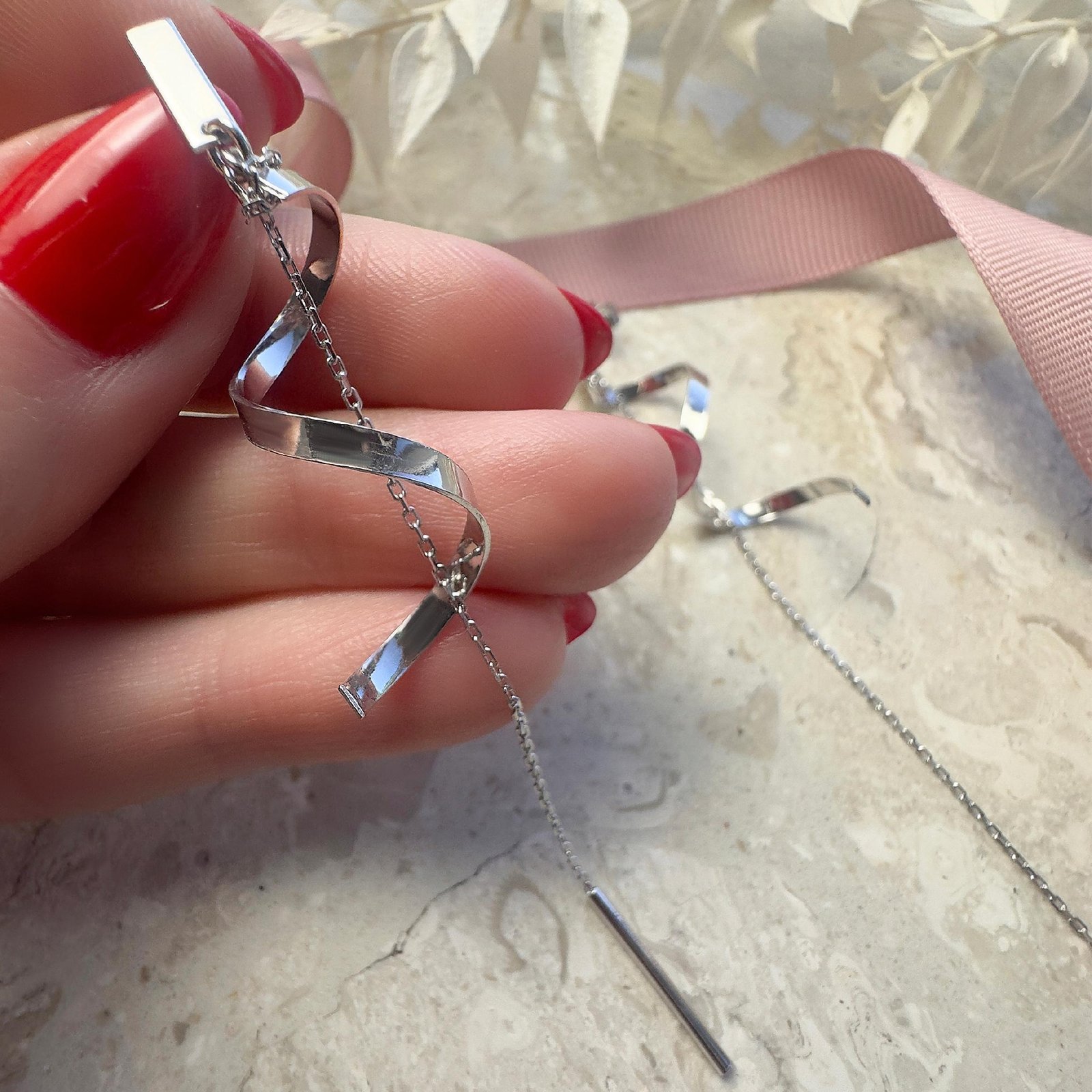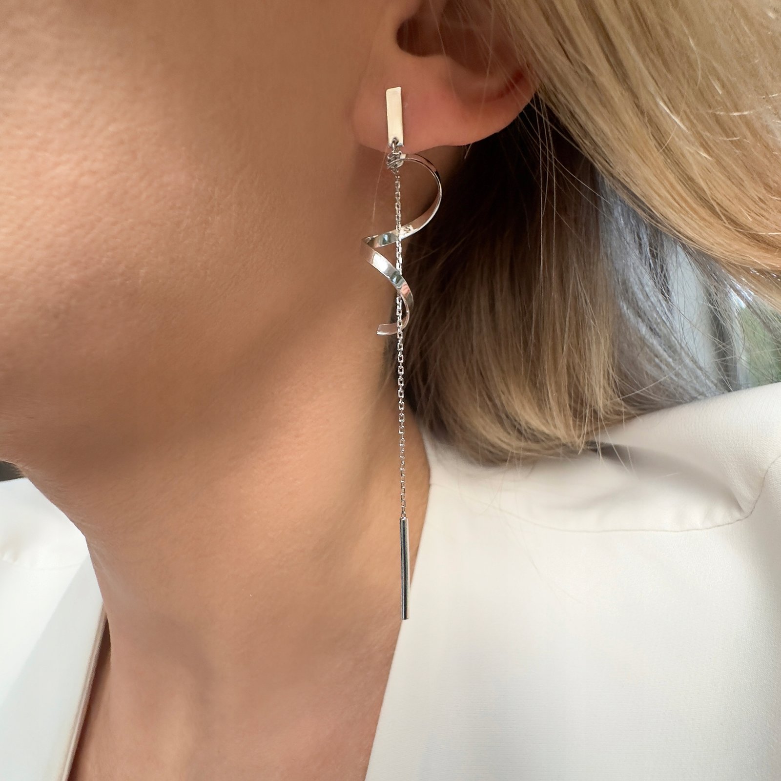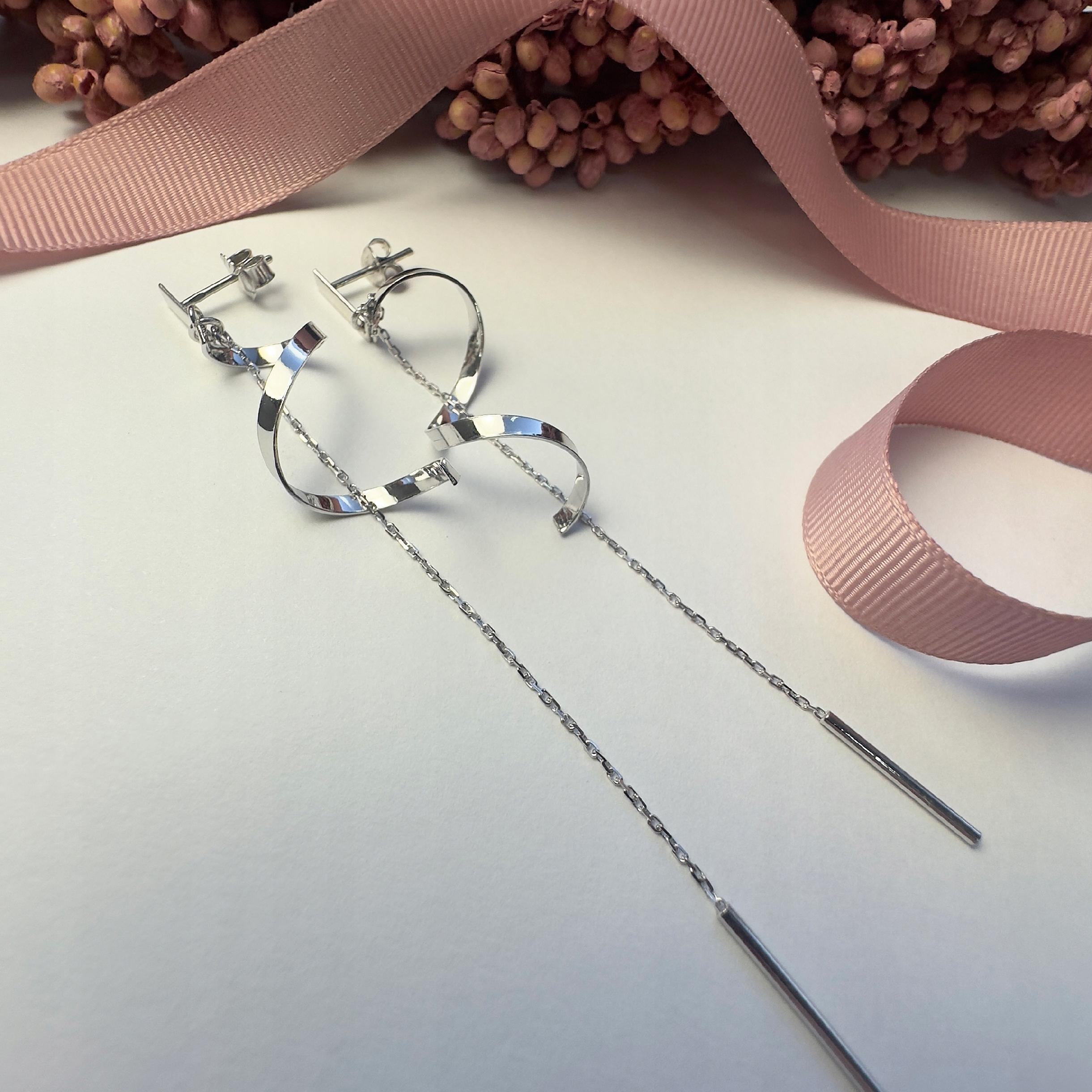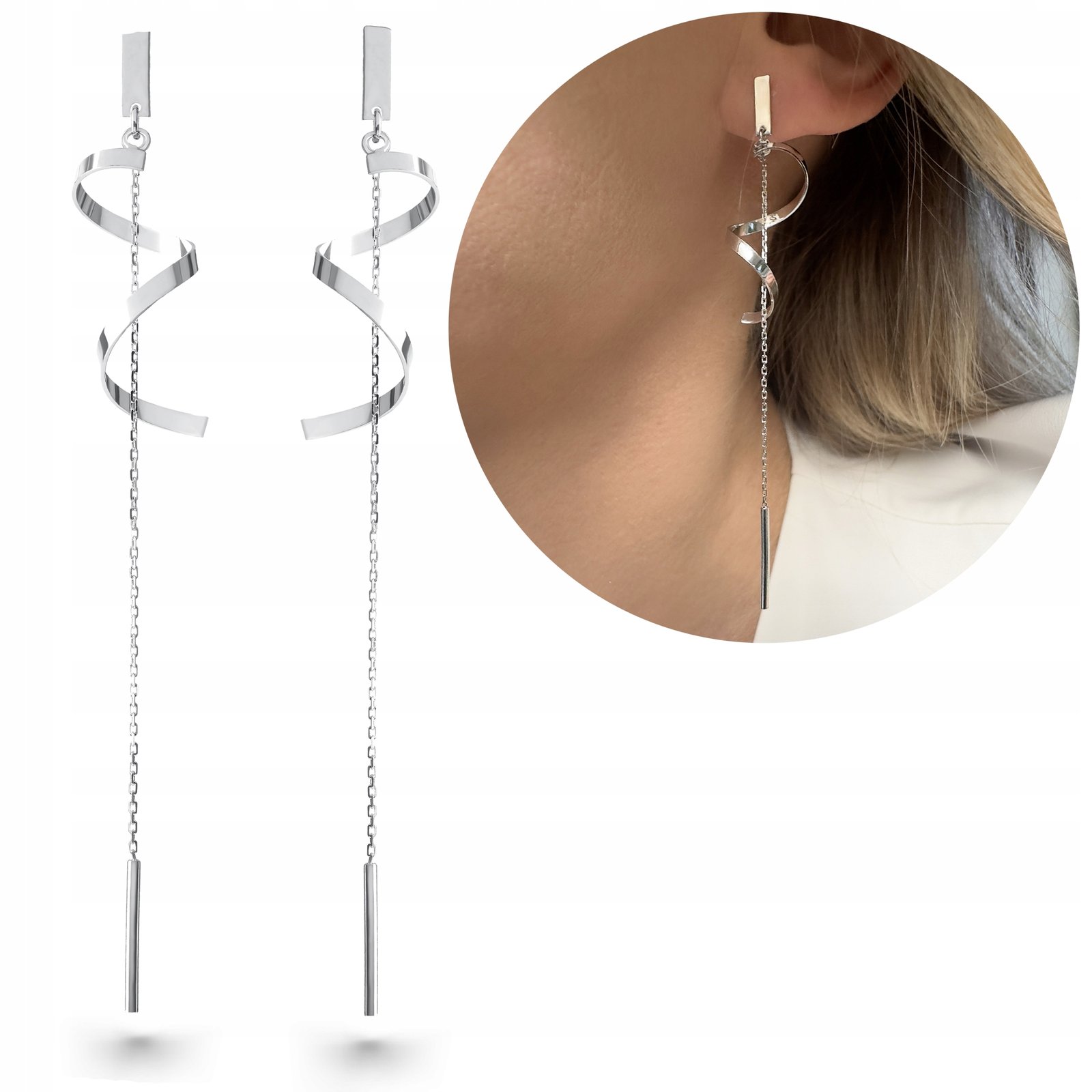 Kolczyki srebrne długie wiszące łańcuszki 925