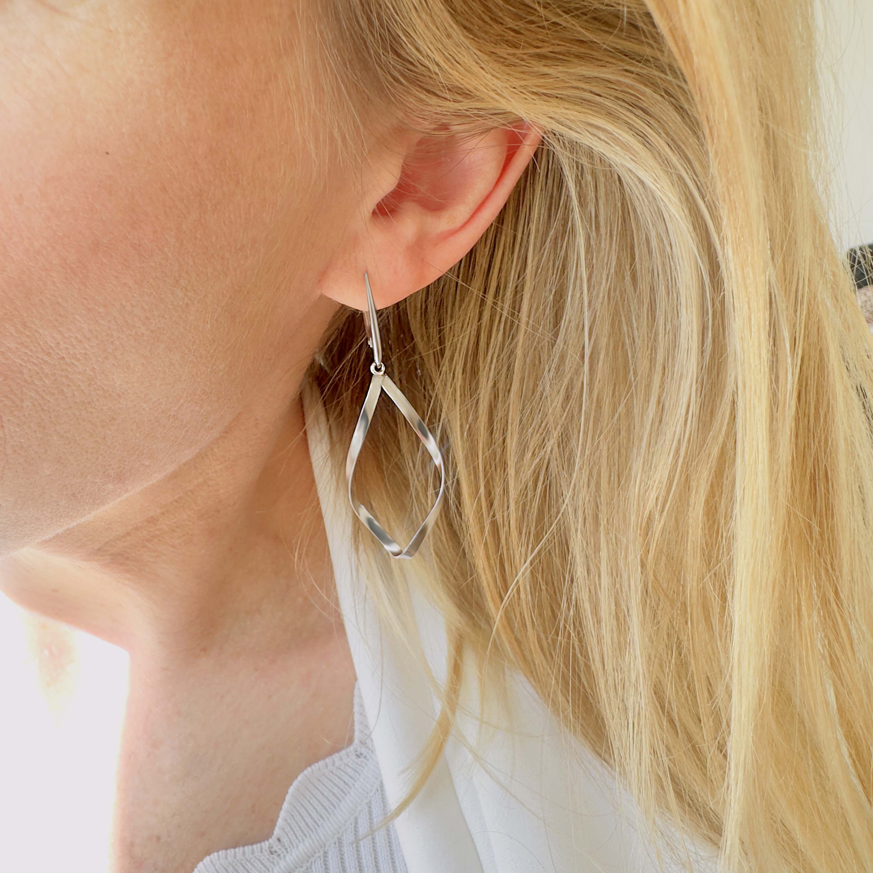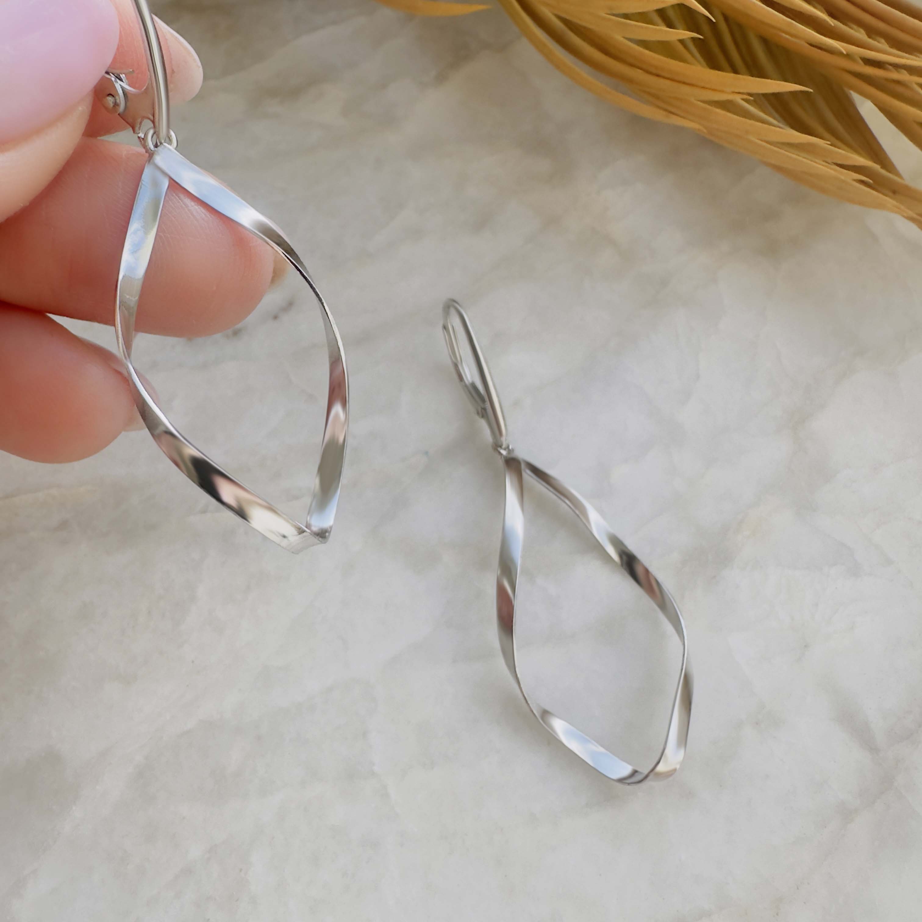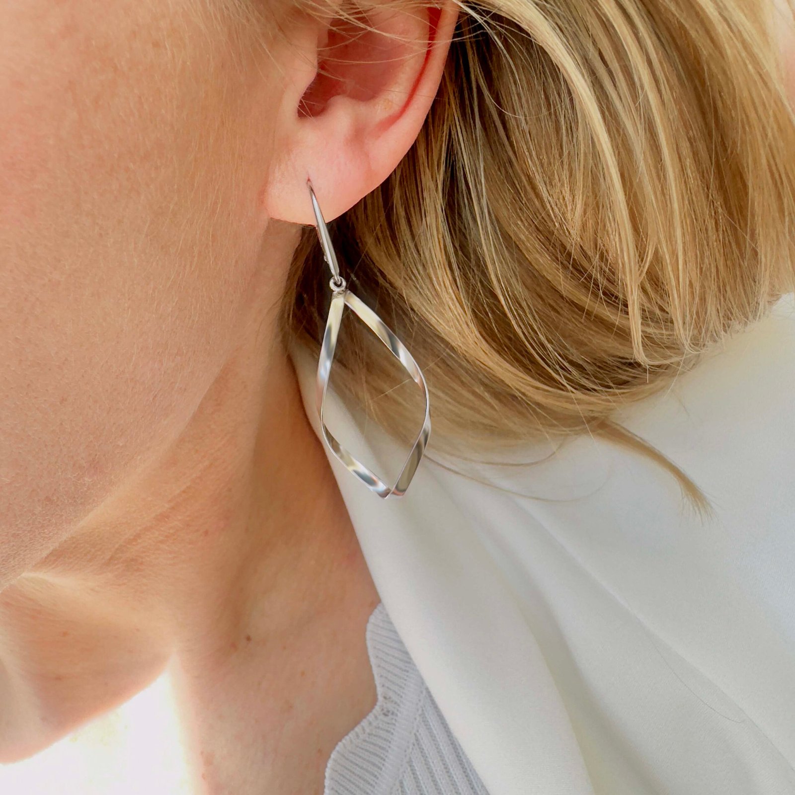 Kolczyki srebrne wiszące romby rodowane ażurowe lekkie angielskie 925
