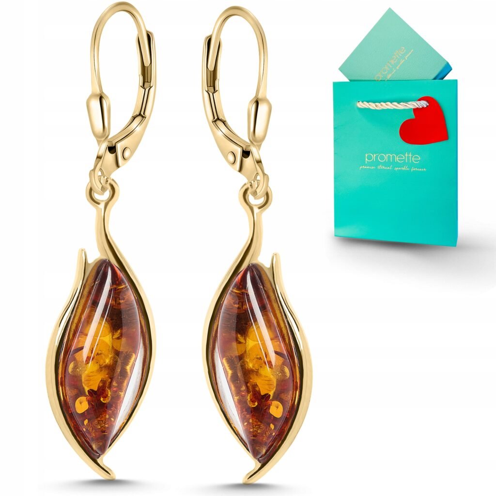 KOLCZYKI SREBRNE POZŁACANE Z BURSZTYNEM