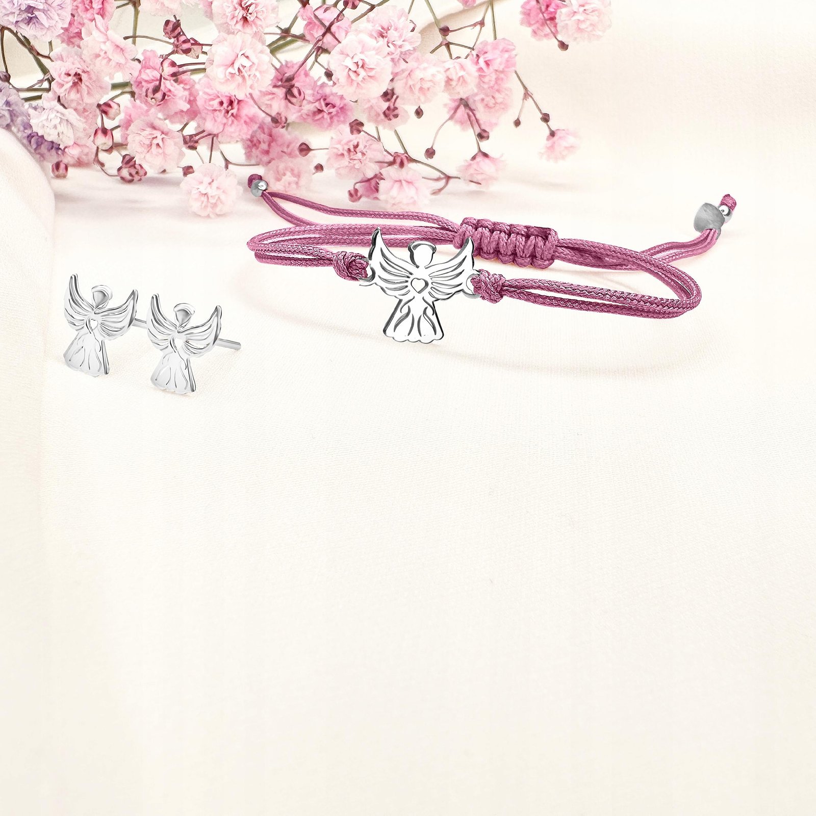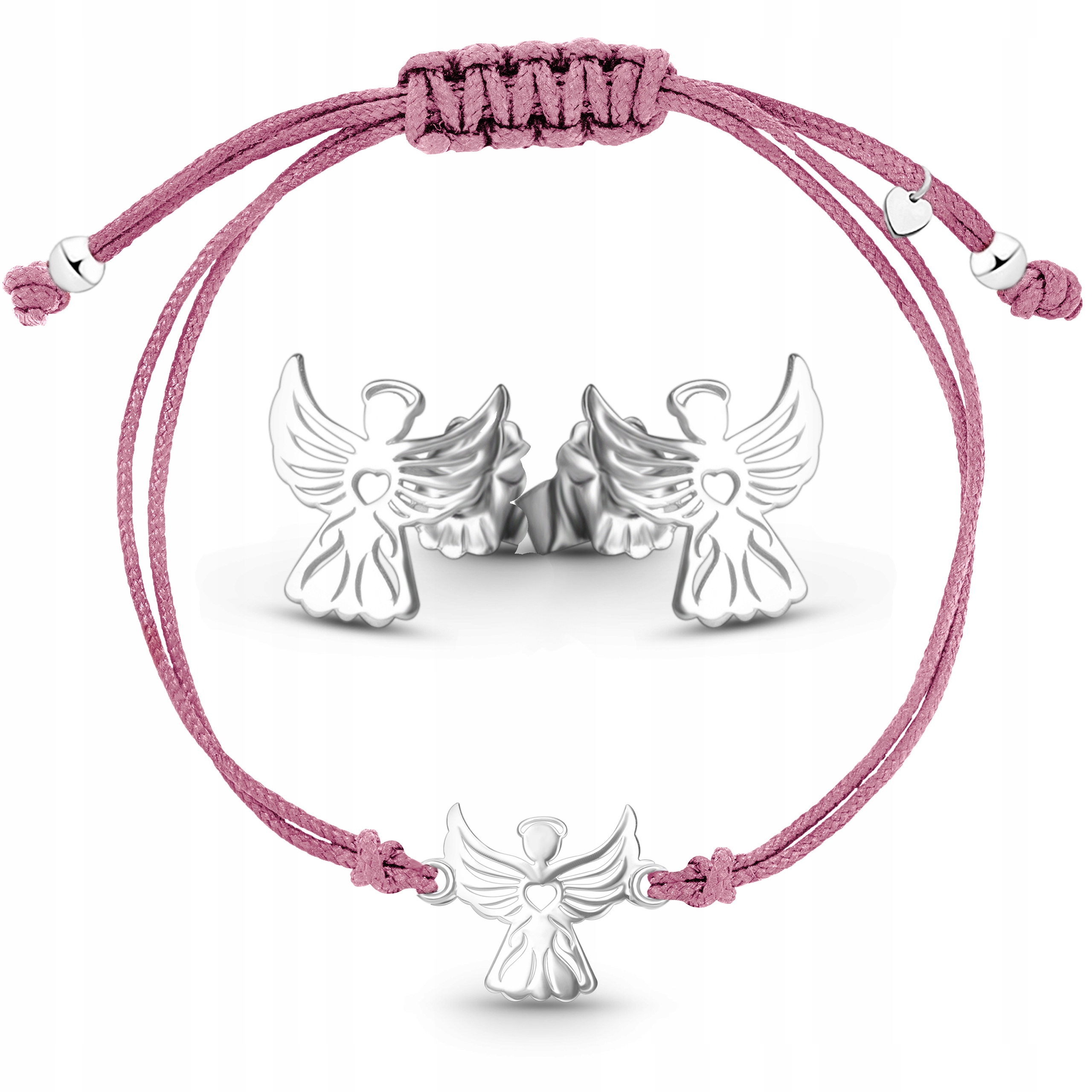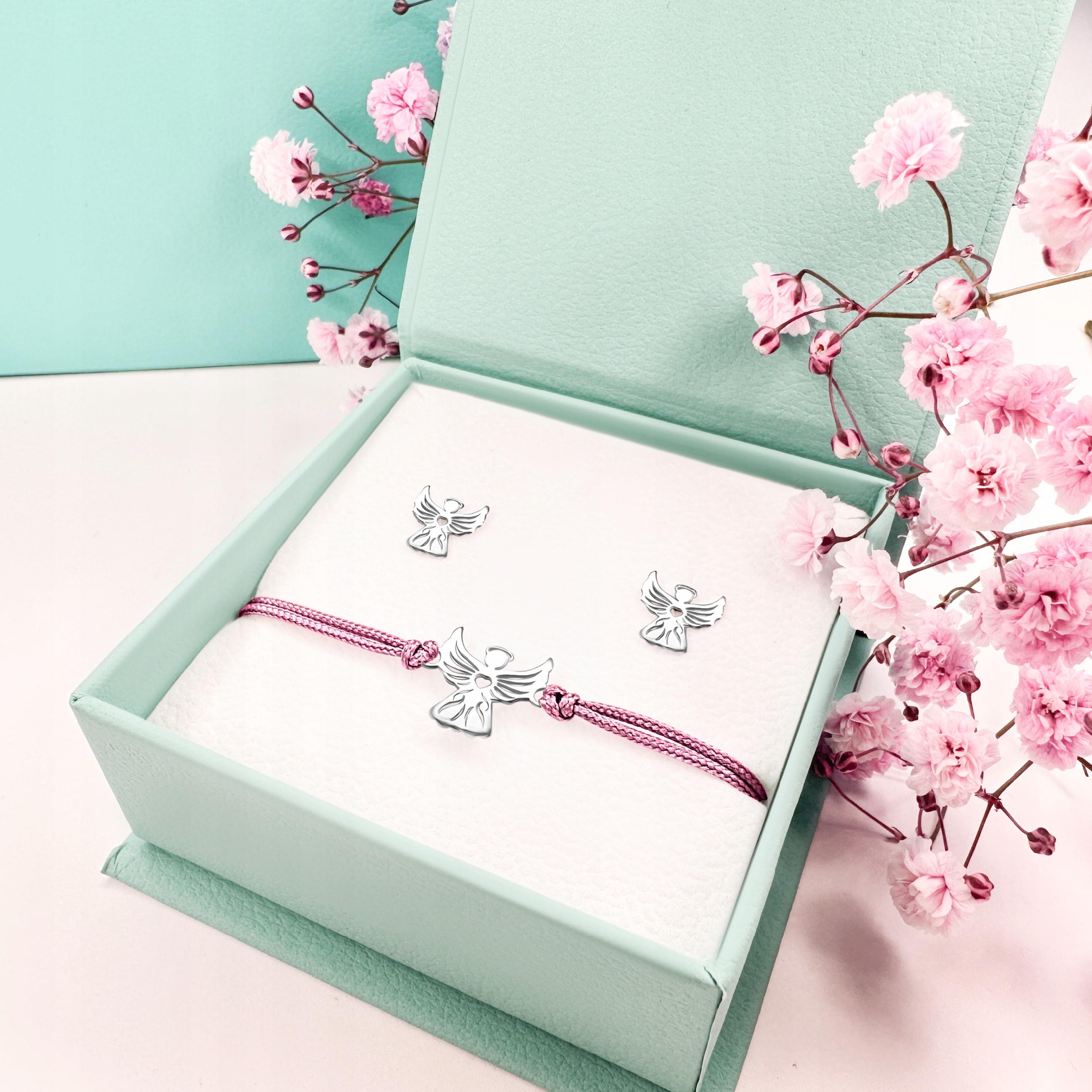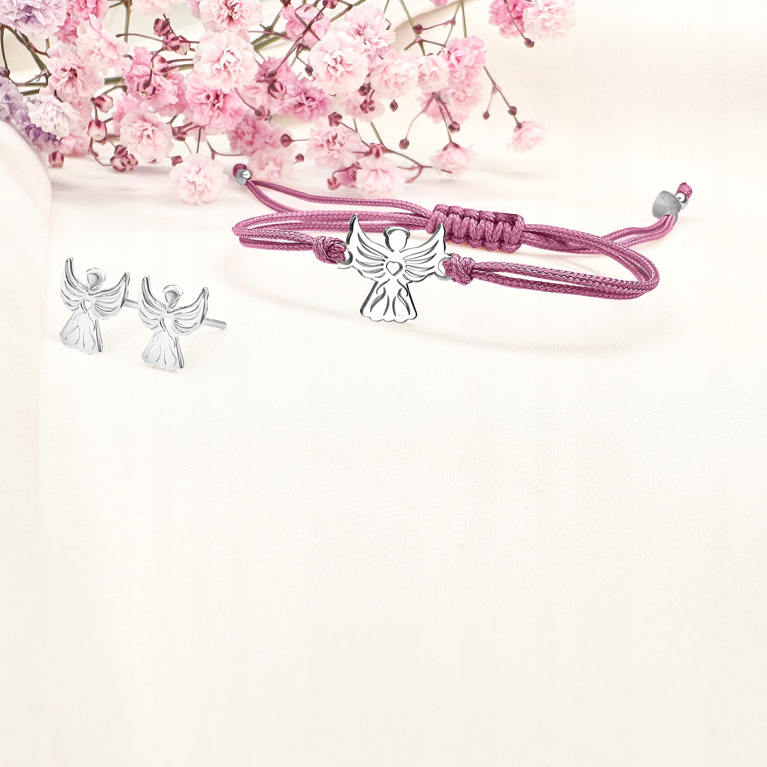 Komplet biżuterii srebrnej dla dziewczynki kolczyki bransoletka aniołek 925