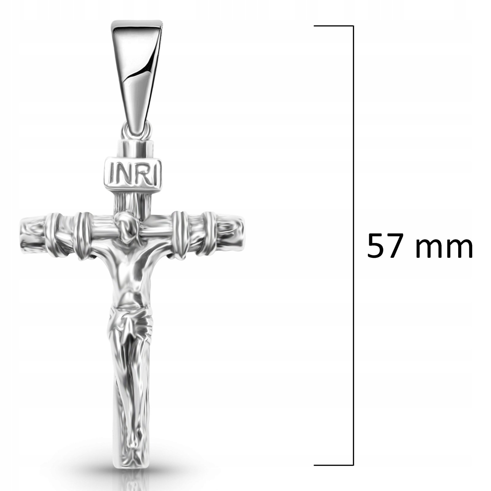 Krzyżyk jest duży i solidny - wykonany z pełnego srebra 925. Jego wysokość z mankietką to aż 57 mm.