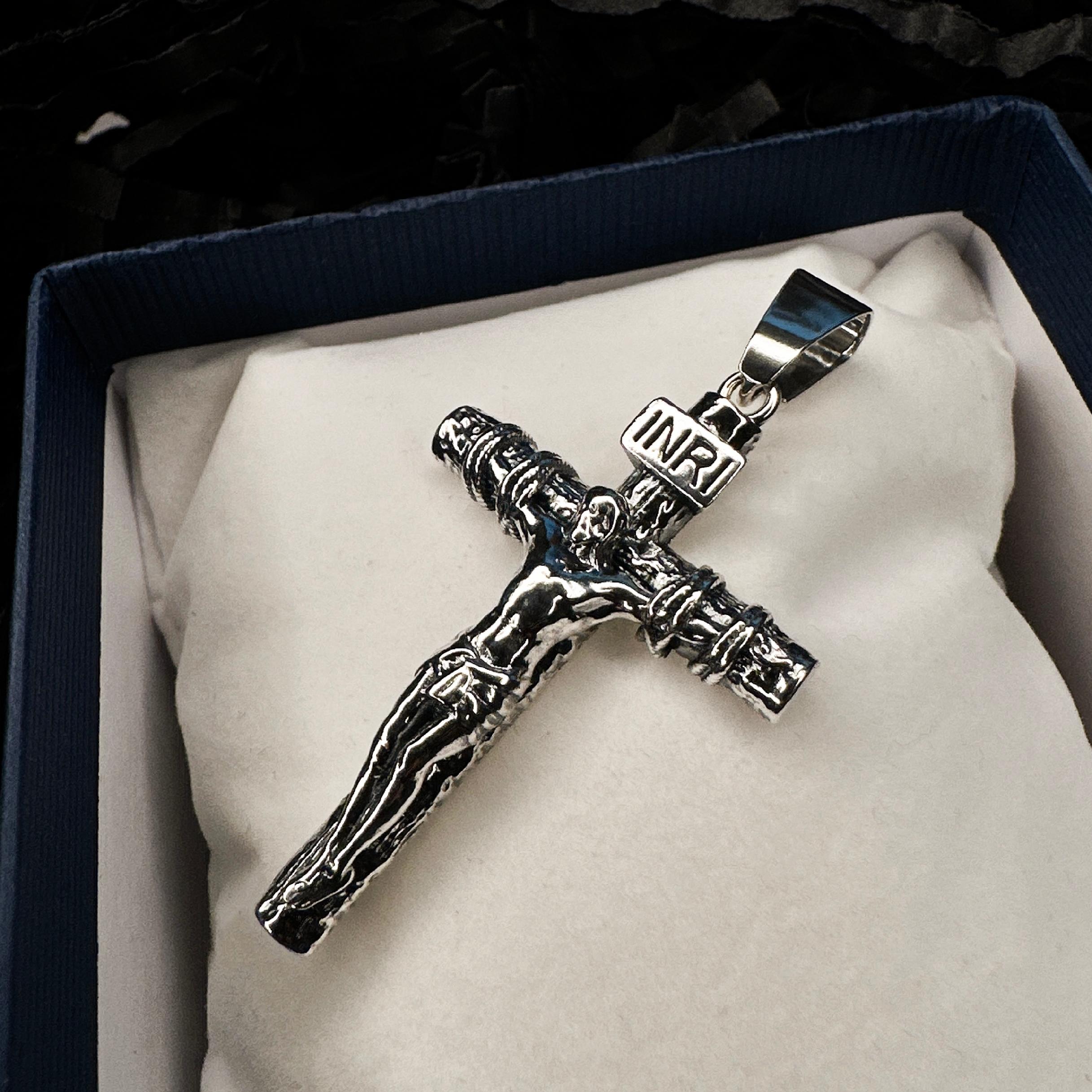 Srebrny duży krzyżyk męski z Jezusem srebro 925