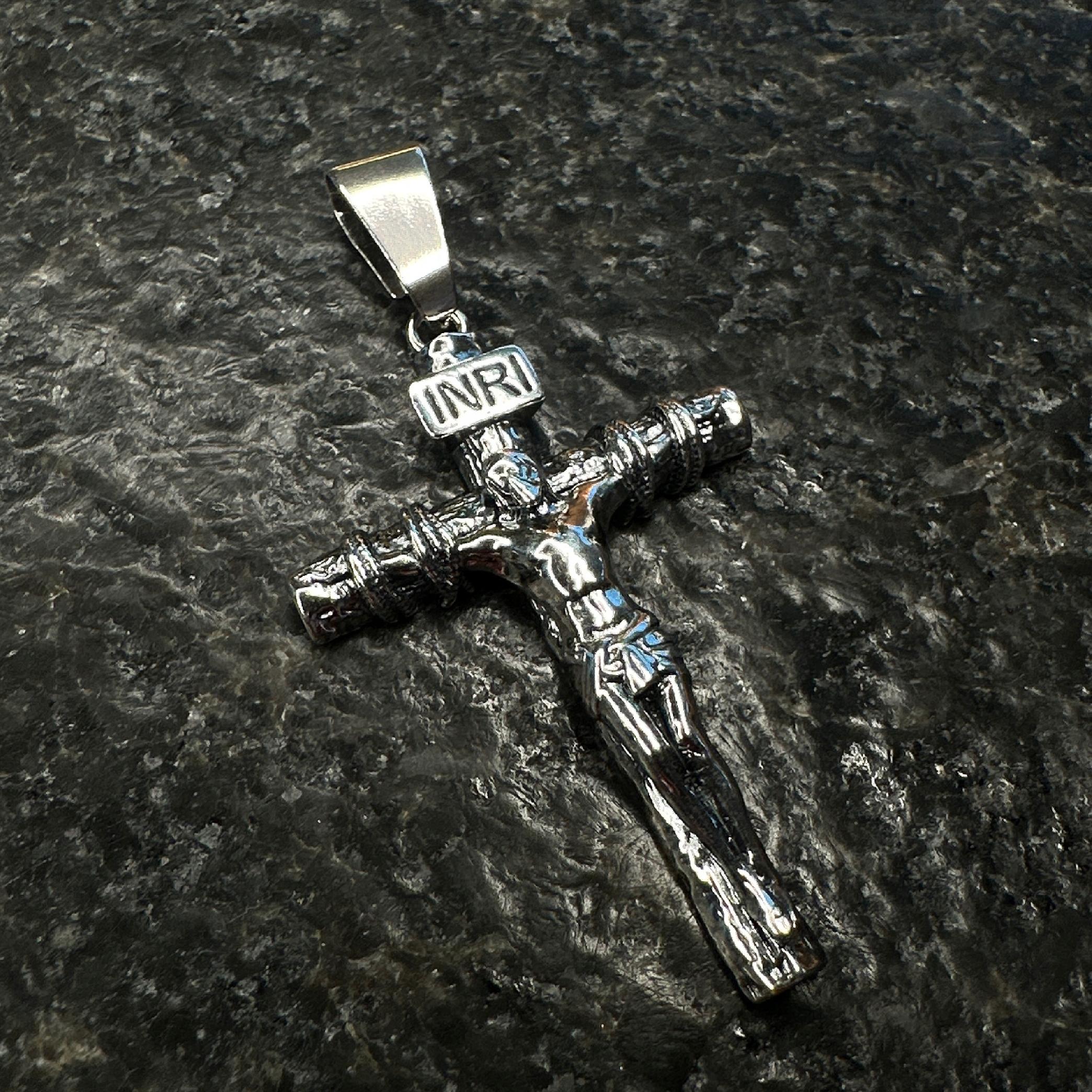 Krzyżyk posiada dużą zawieszkę dzięki której można założyć go na łańcuszek o szerokości aż 12 mm