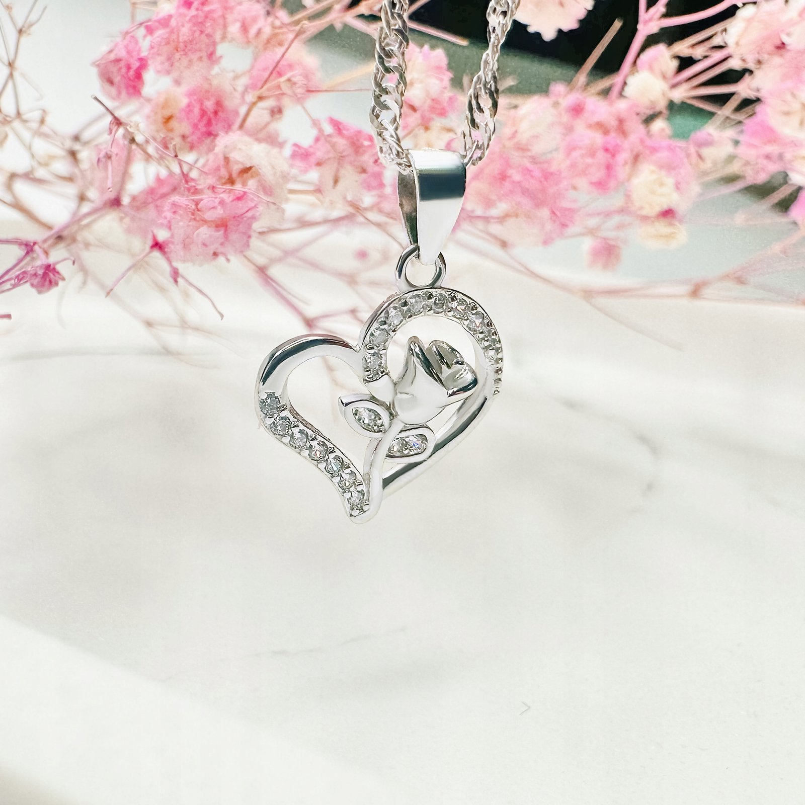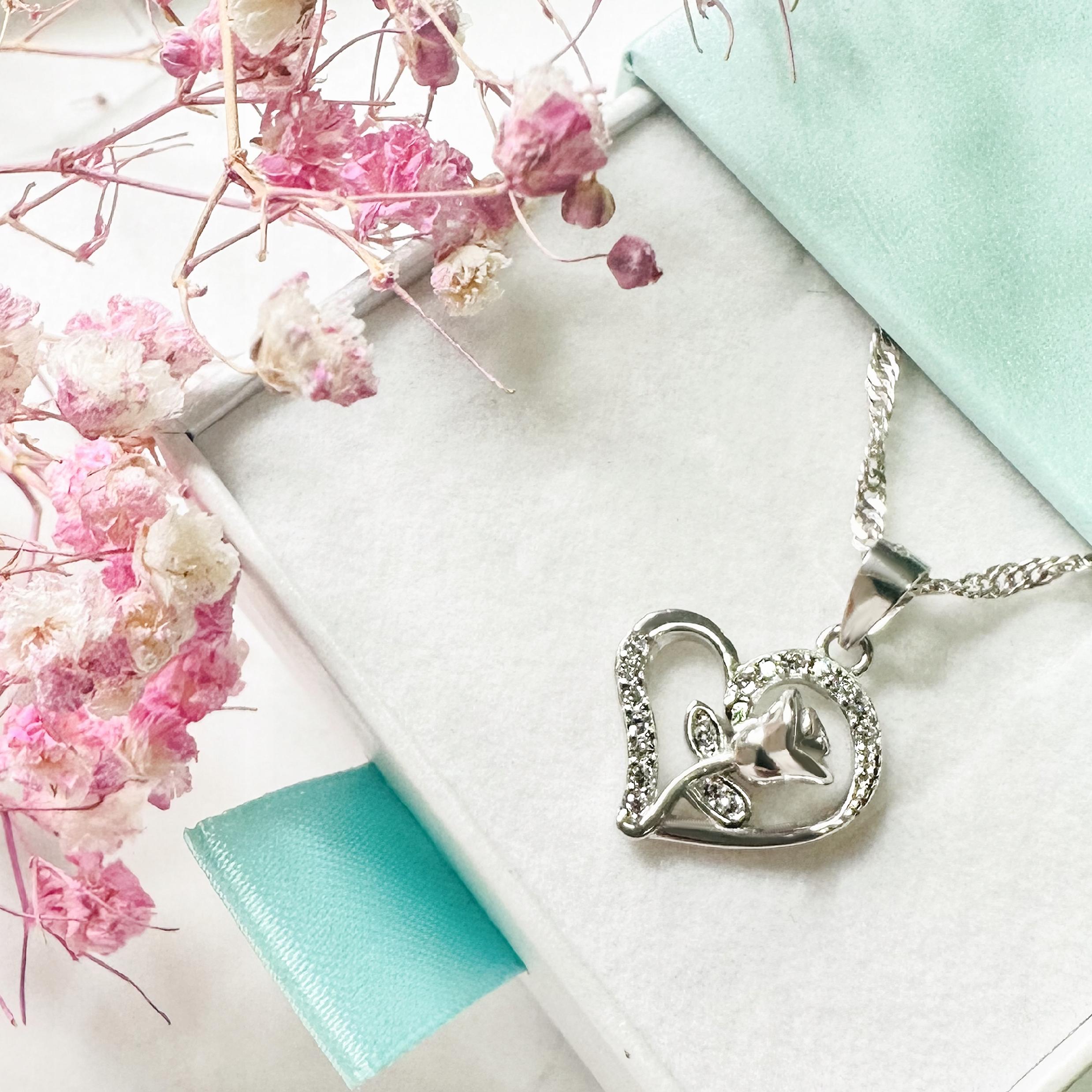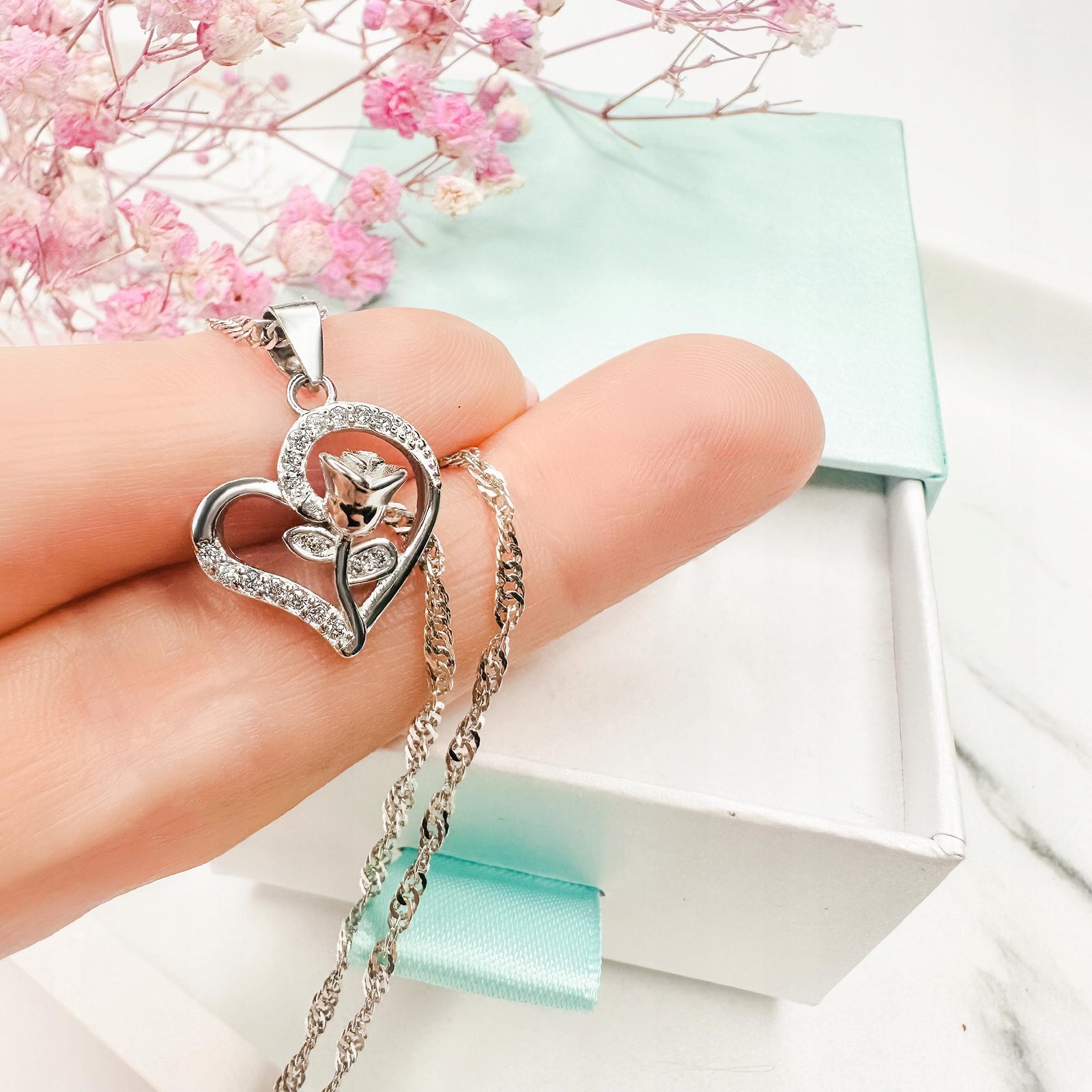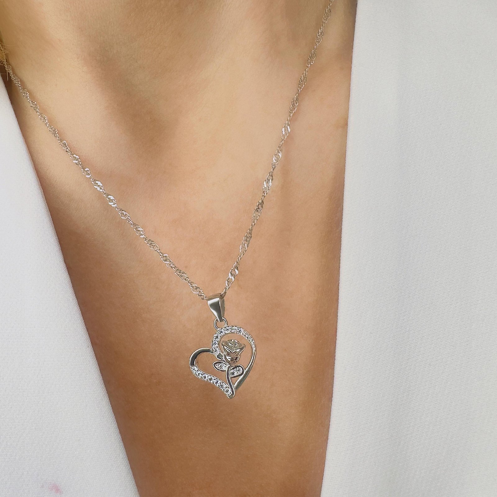 Naszyjnik srebrny damski serce z różą srebro 925 pudełko