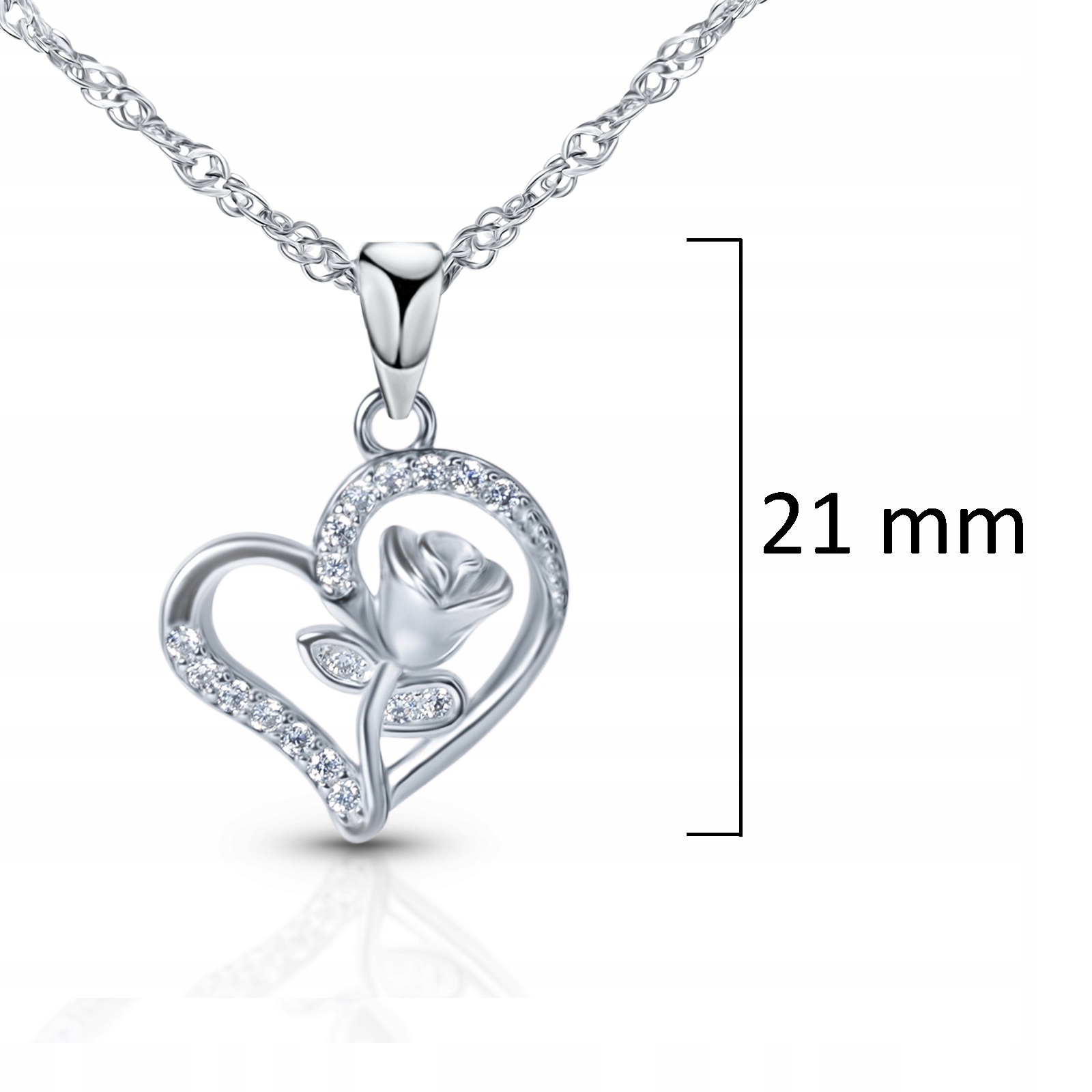 Wysokość samego serca z zawieszką to 20 mm dzięki czemu serce jest widoczne, ale jednocześnie subtelne