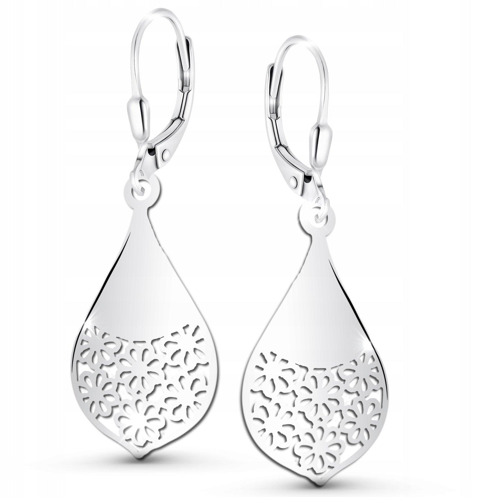Srebrne wiszące kolczyki łezki piękne ażurowe lekkie angielskie zapięcie
