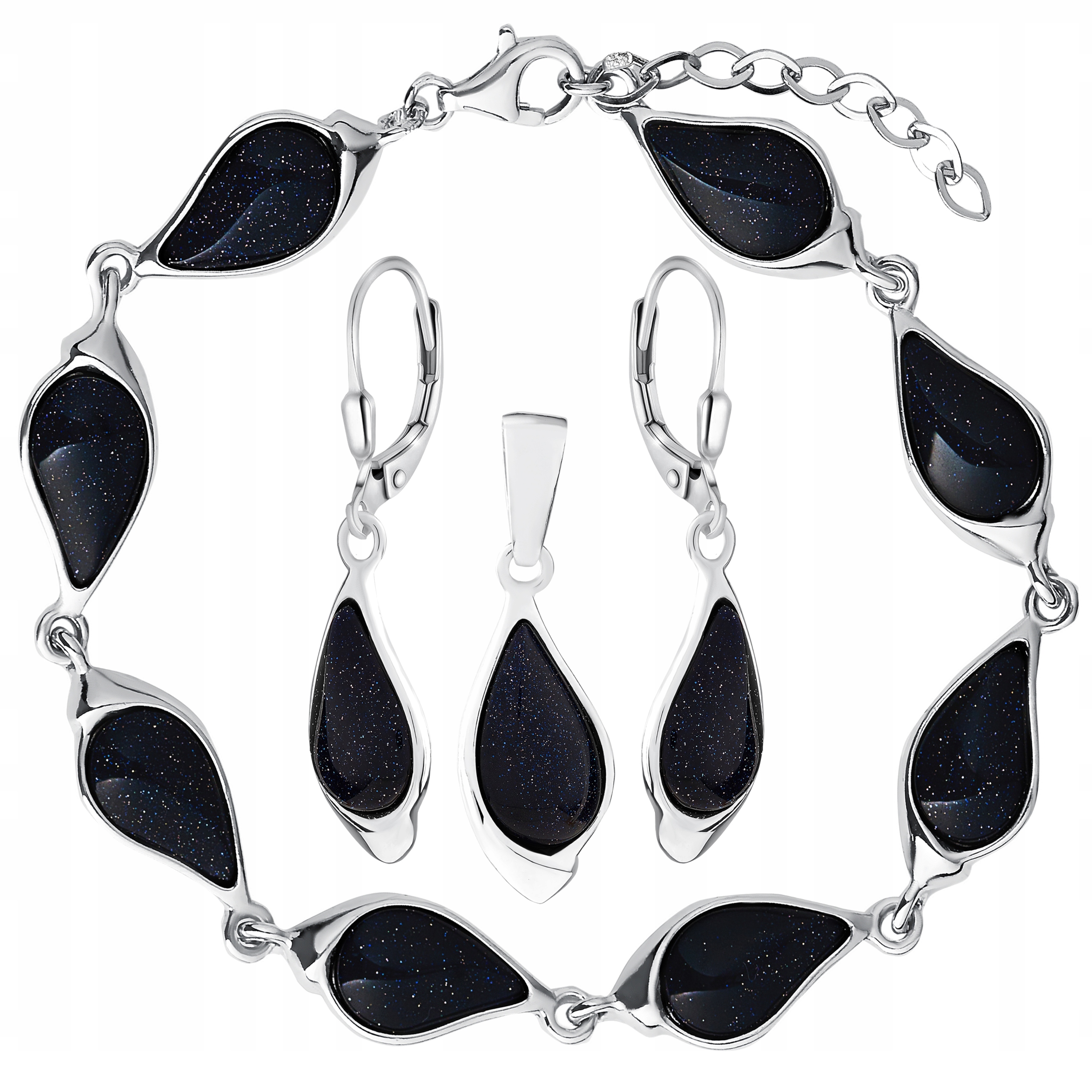 Srebrny komplet noc kairu kolczyki bransoletka zawieszka 925